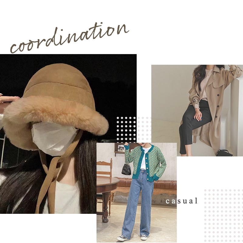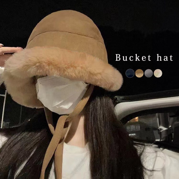 レディース フェイクファーバケットハット