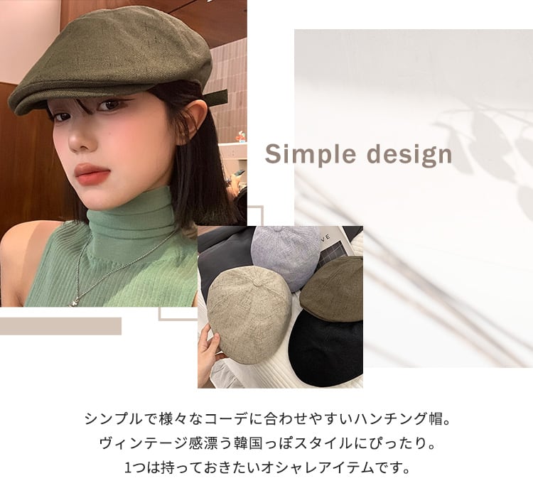 シンプルで様々なコーデに合わせやすいハンチング帽。