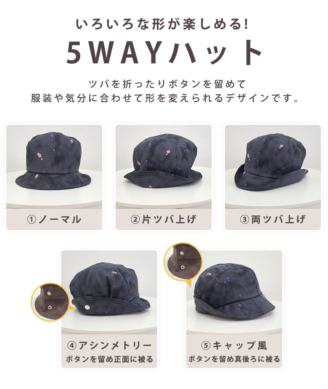 いろいろな形が楽しめる!5WAYハット
