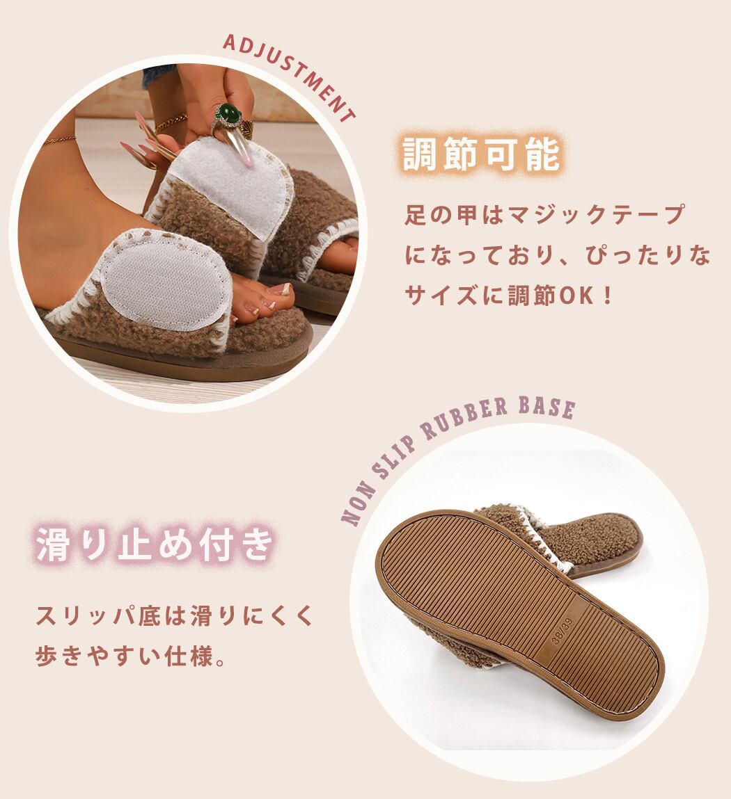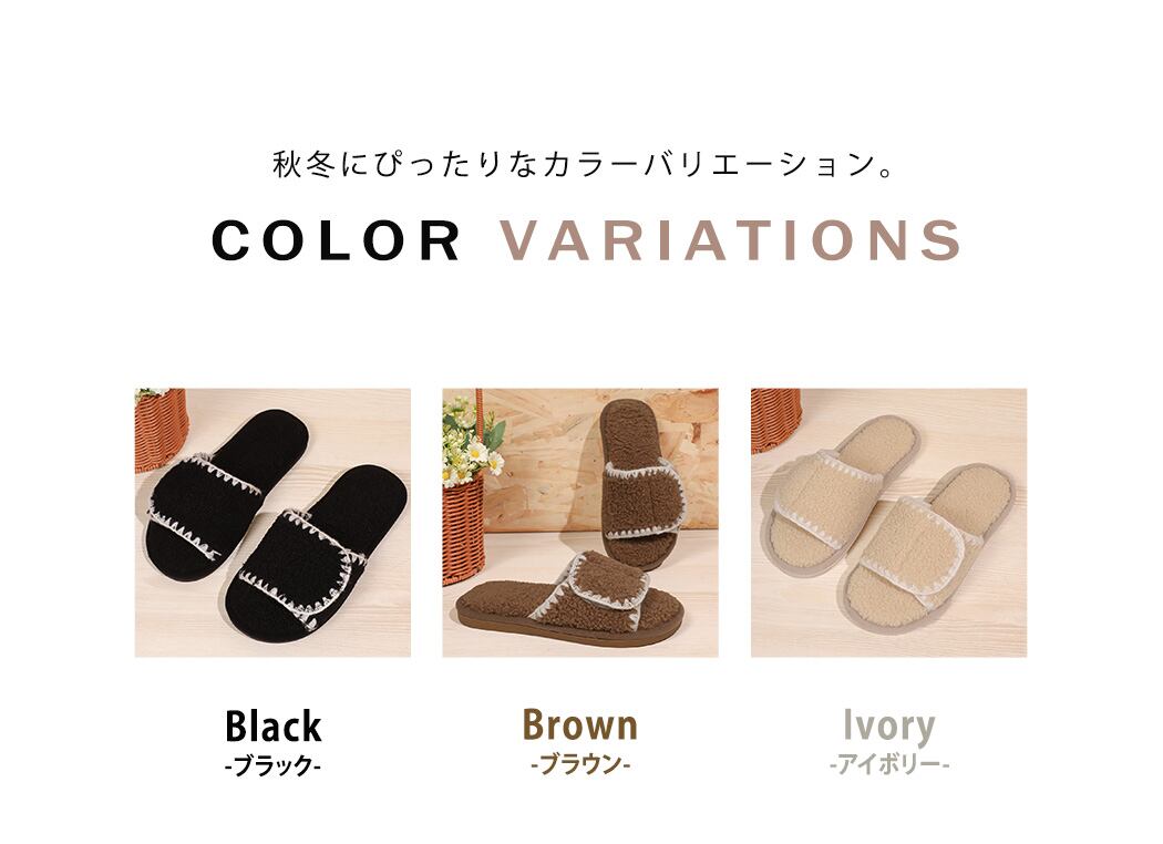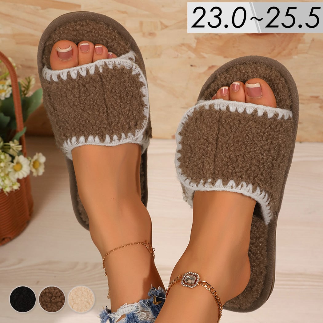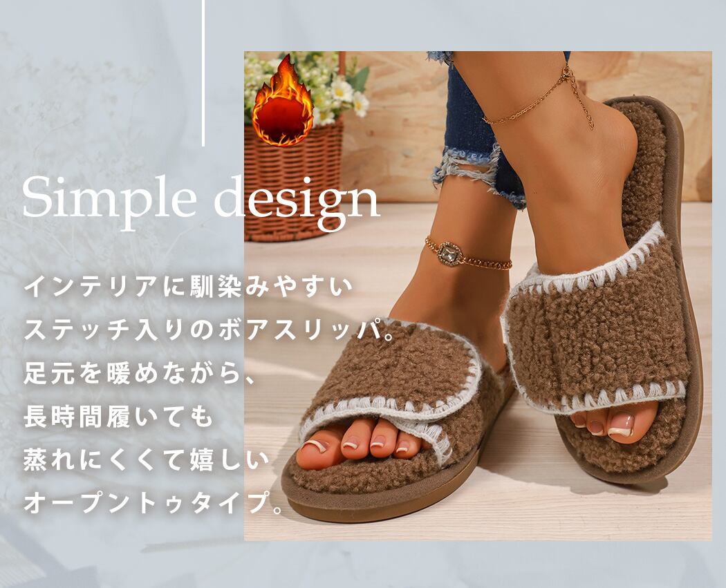 インテリアに馴染みやすいステッチ入りのボアスリッパ。