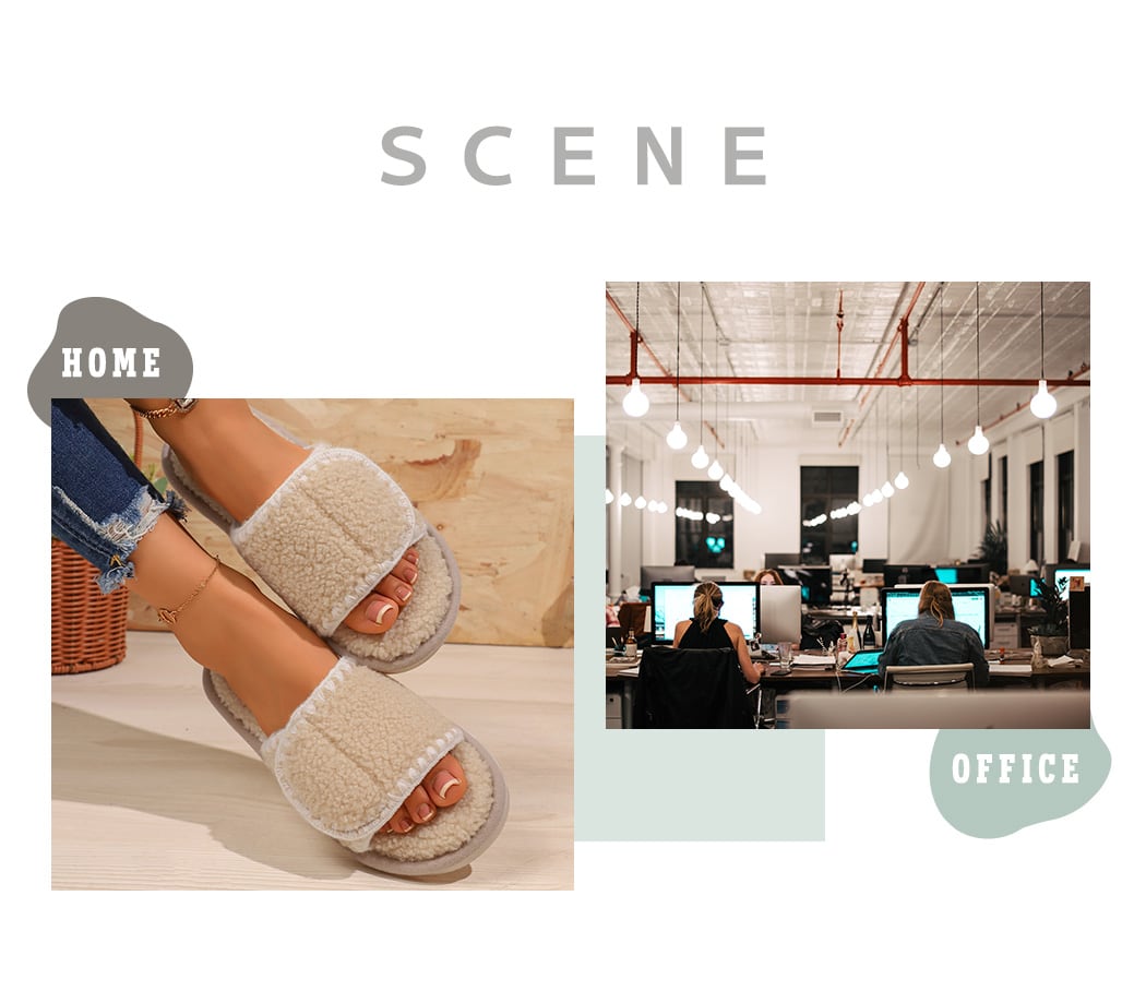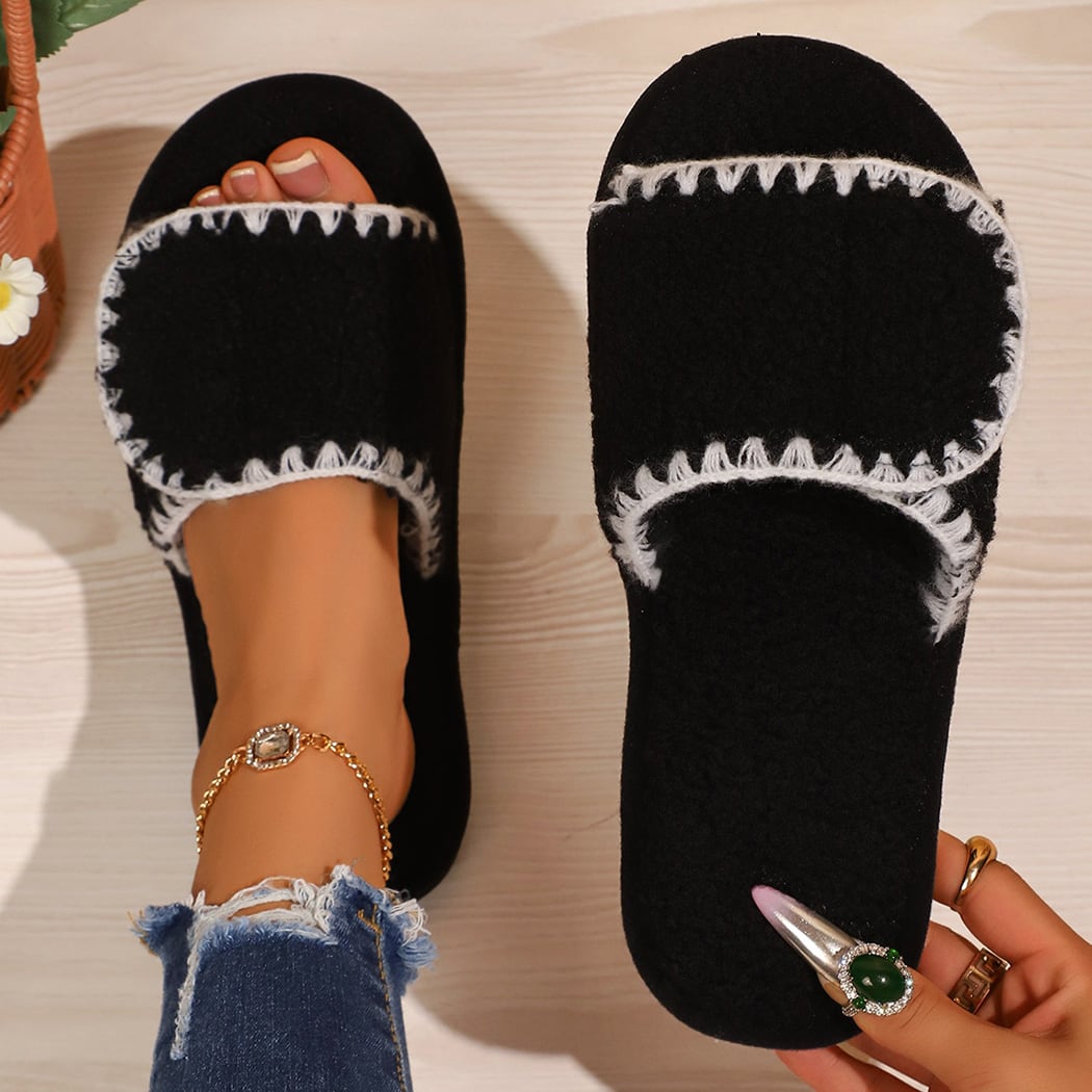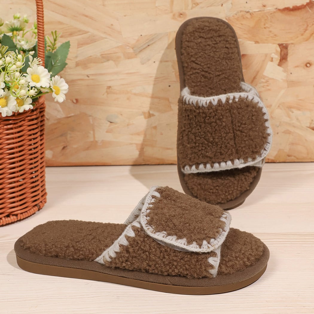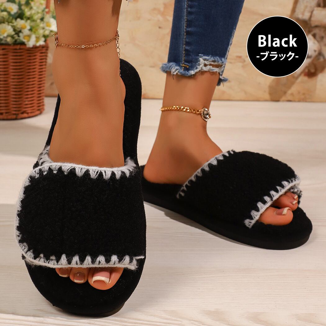 インテリアに馴染みやすいステッチ入りのボアスリッパ。
