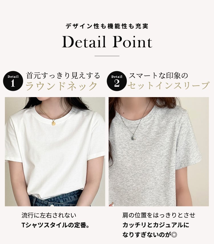 首元すっきり見えするラウンドネック