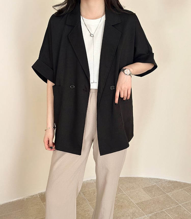 肩の位置をはっきりとさせカッチリとカジュアルに