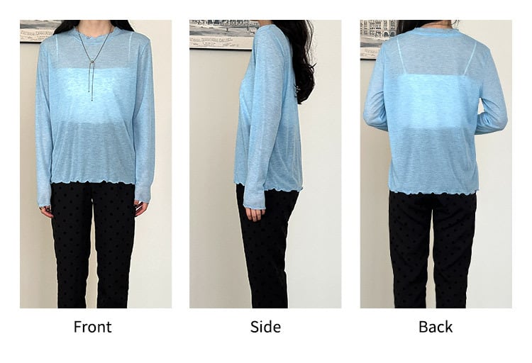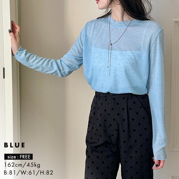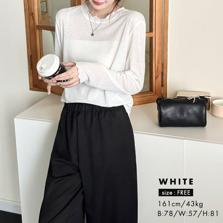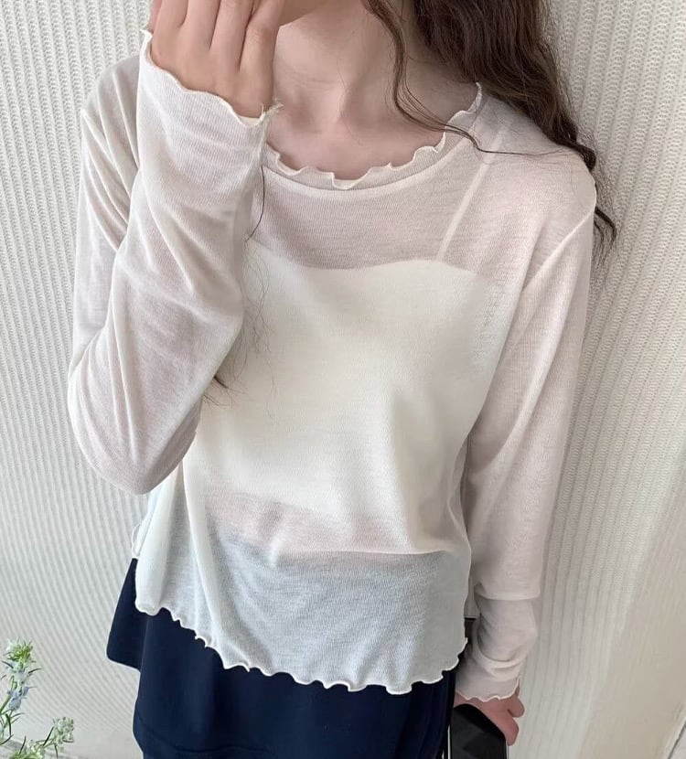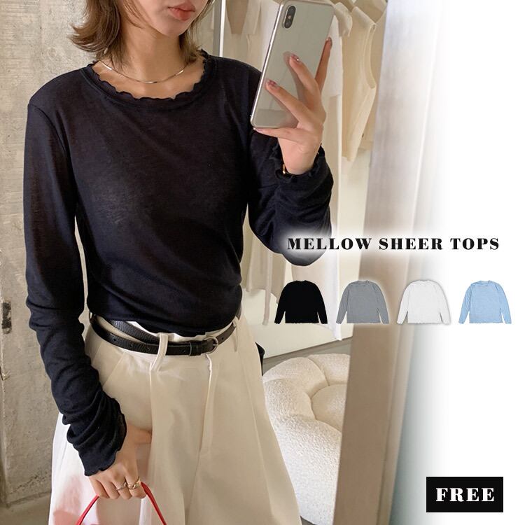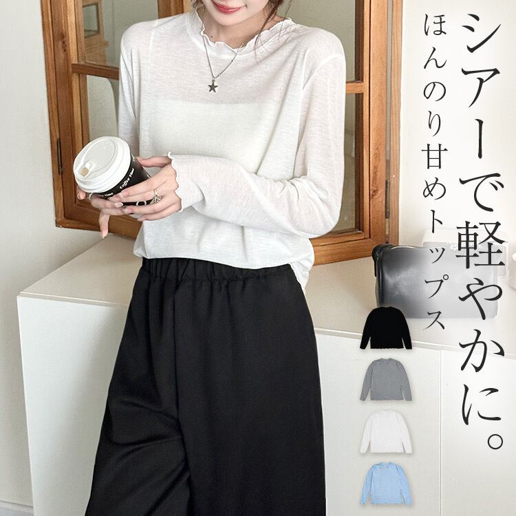 軽やかな透け感が魅力的なメロウフリルシアートップス。