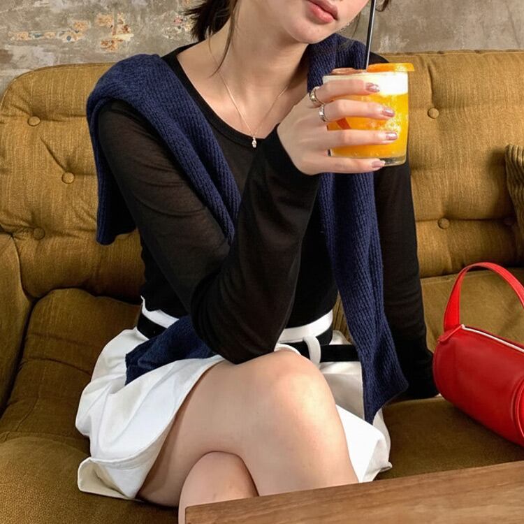 【メール便】「女っぽな彩りを」 シアー シースルー トップス 長袖/tops2364