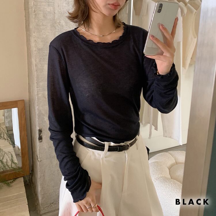 使いやすく着こなしやすい定番のラウンドネックデザイン