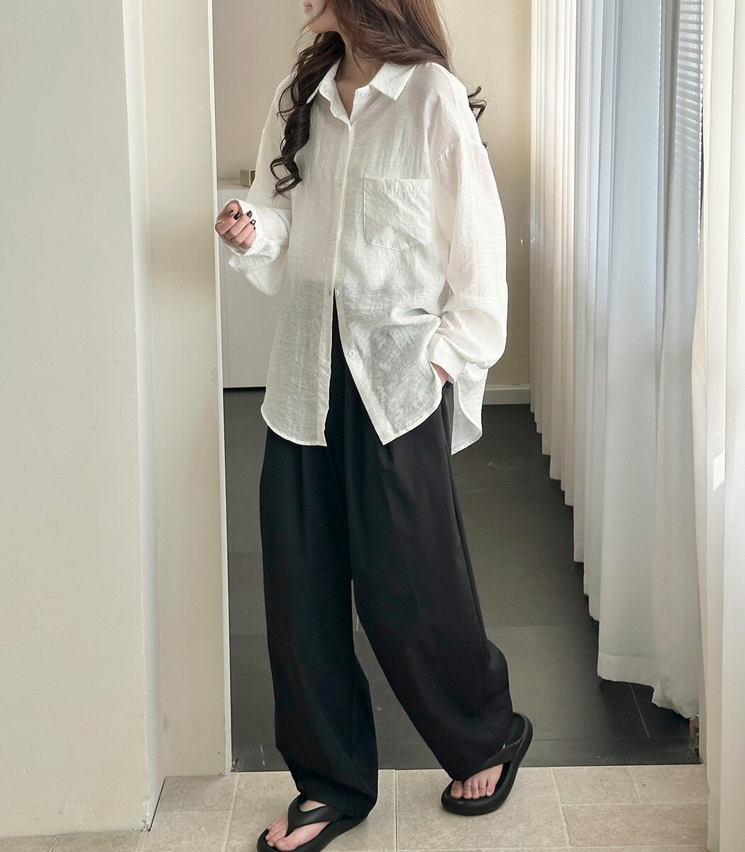 軽やかな透け感が魅力!ゆるっと着られるシアーシャツ。