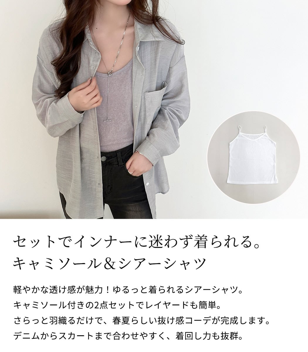 【メール便】 「カーデのように羽織る」シャツ キャミソール シースルー レディース/tops2372
