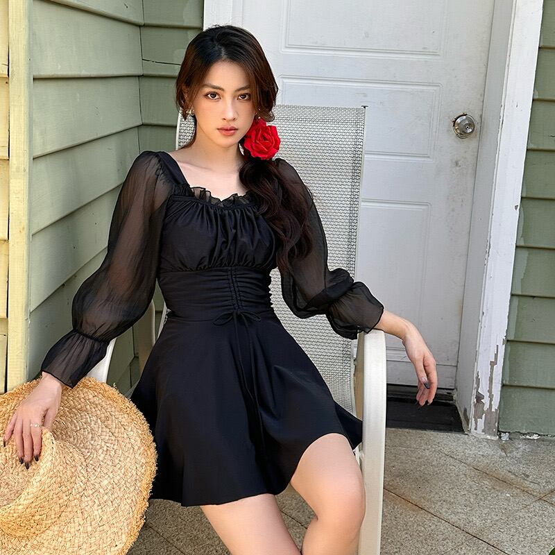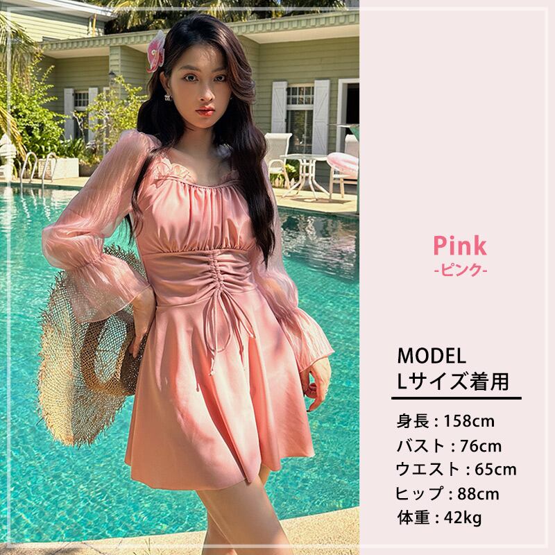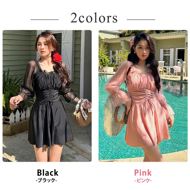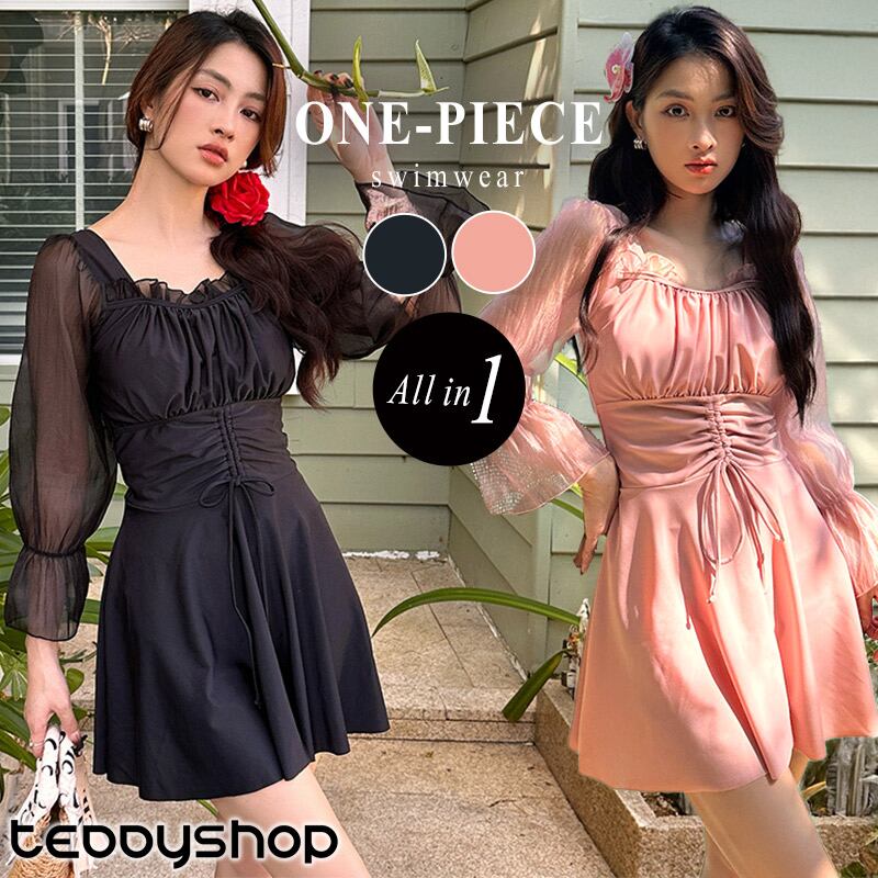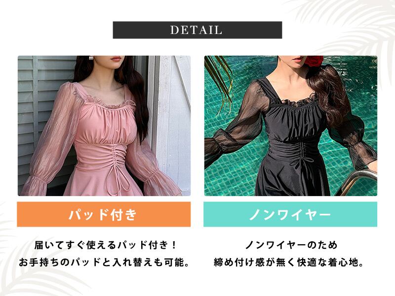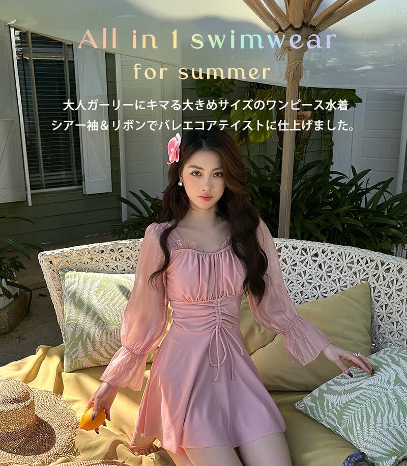 シアー袖ワンピ水着