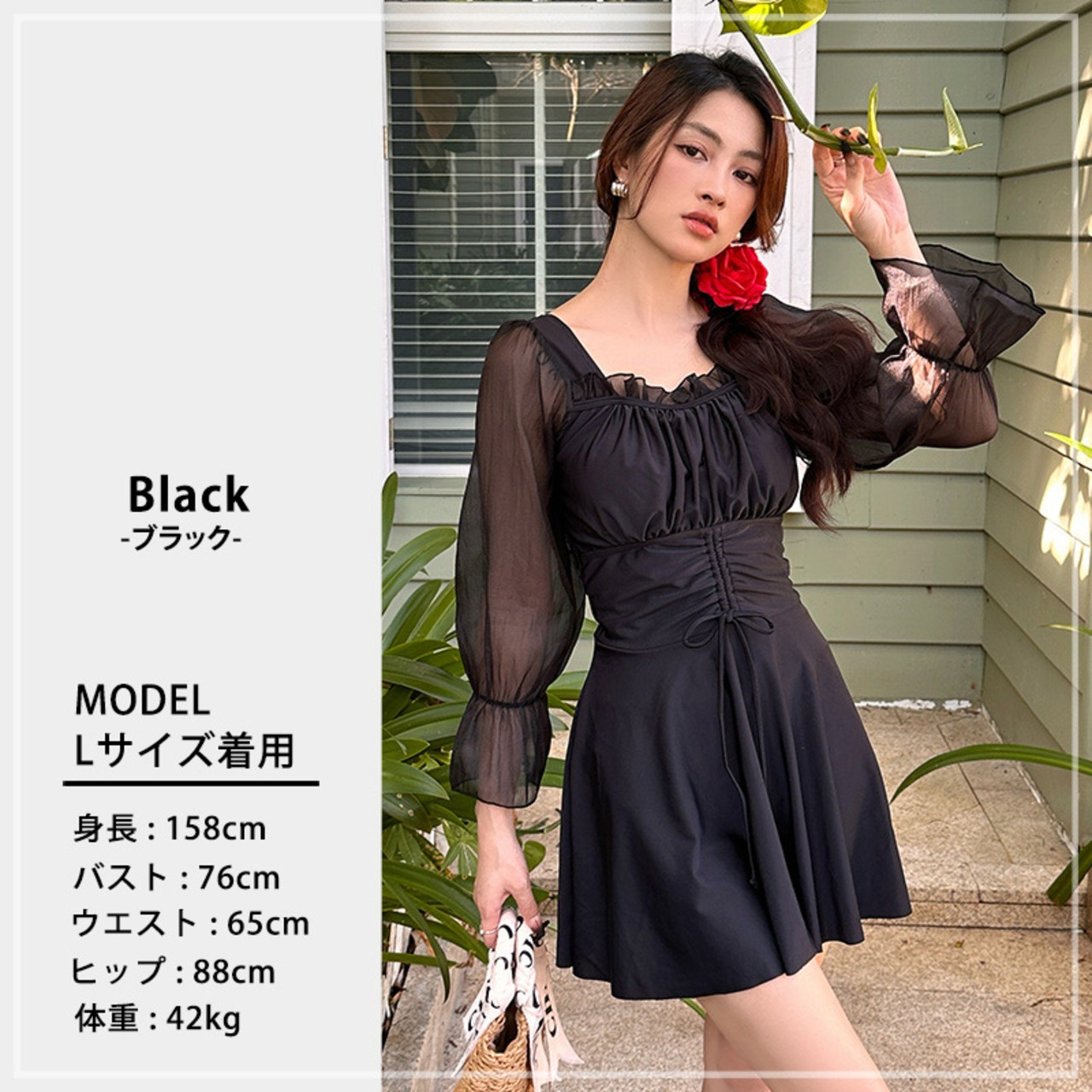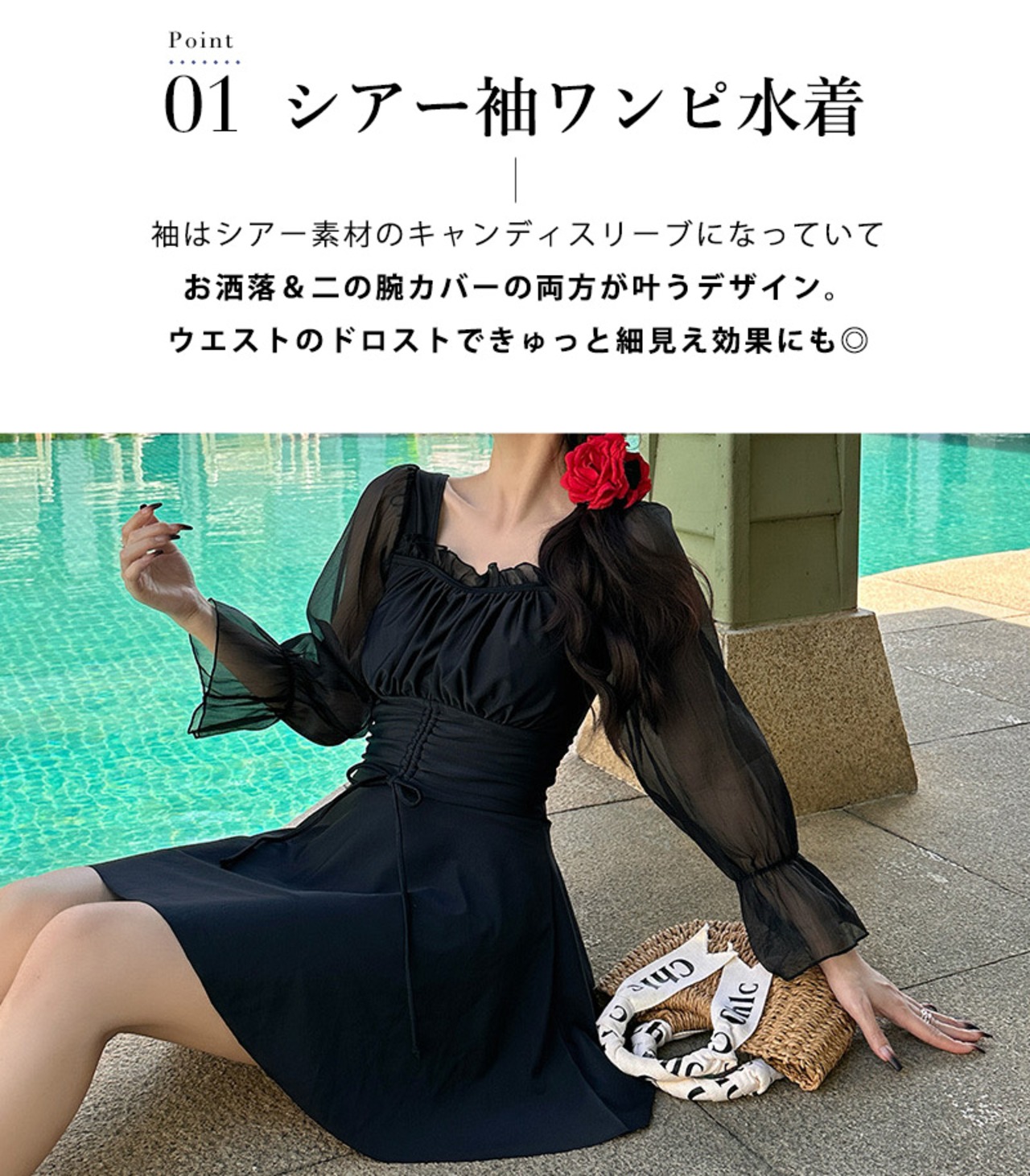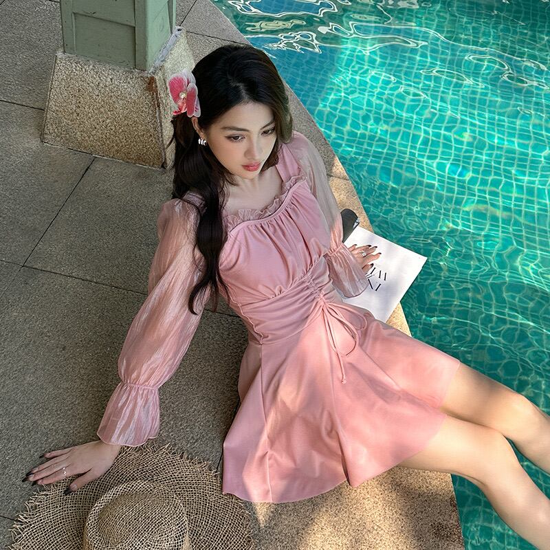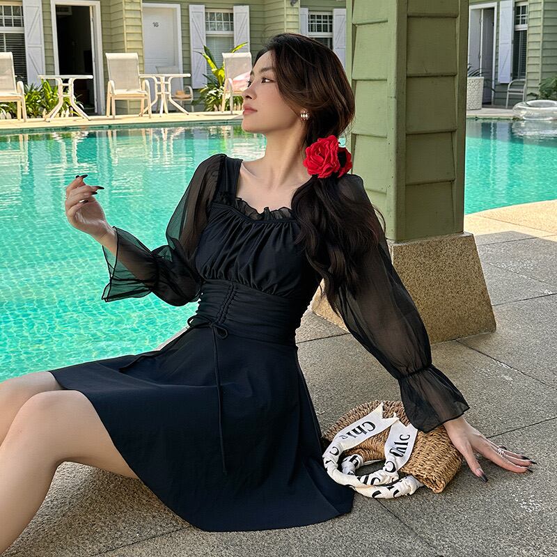 シアー袖ワンピ水着