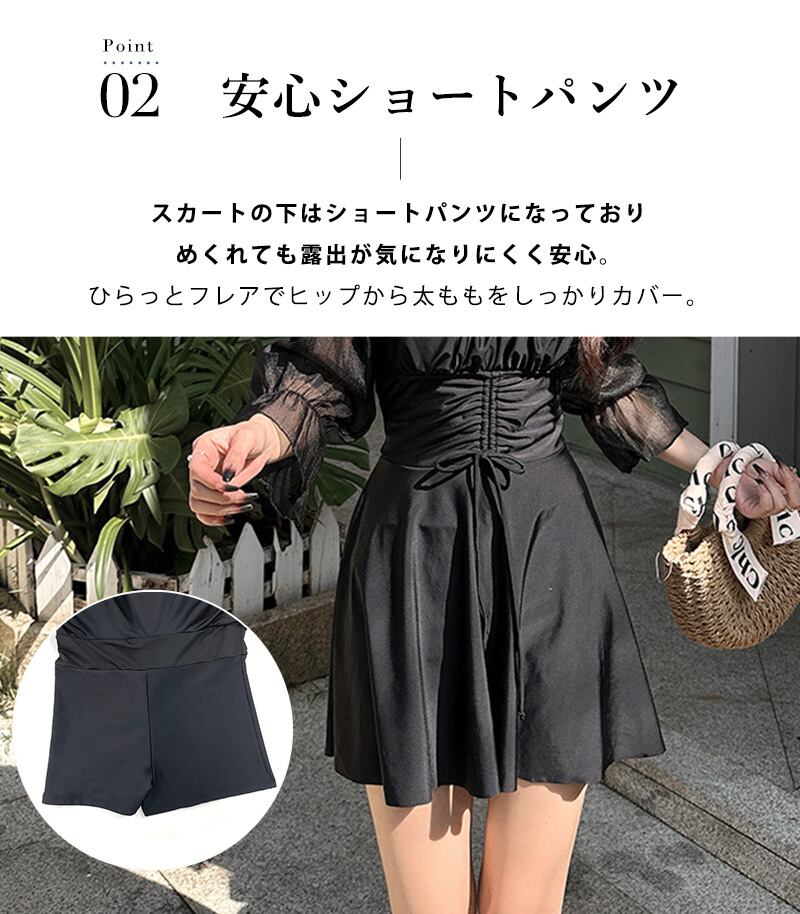 ひらっとフレアでヒップから太ももをしっかりカバー。