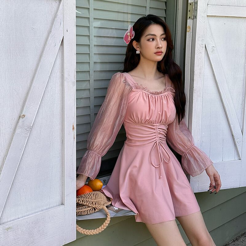 袖&スクエアネック部分のみシアー素材を使用しています。