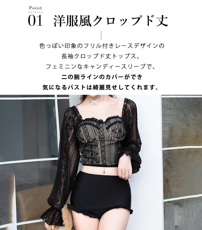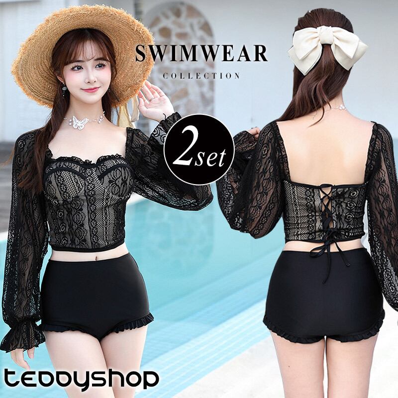 【宅配便】水着 レディース 2点セット 袖あり 長袖/hys3228