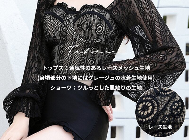 (身頃部分の下地にはグレージュの水着生地使用)