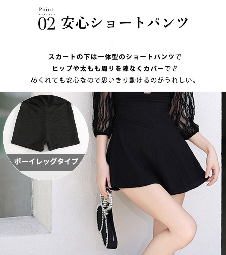 スカートの下は一体型のショートパンツで