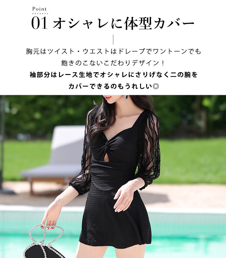 レディース ワンピース水着 7分袖