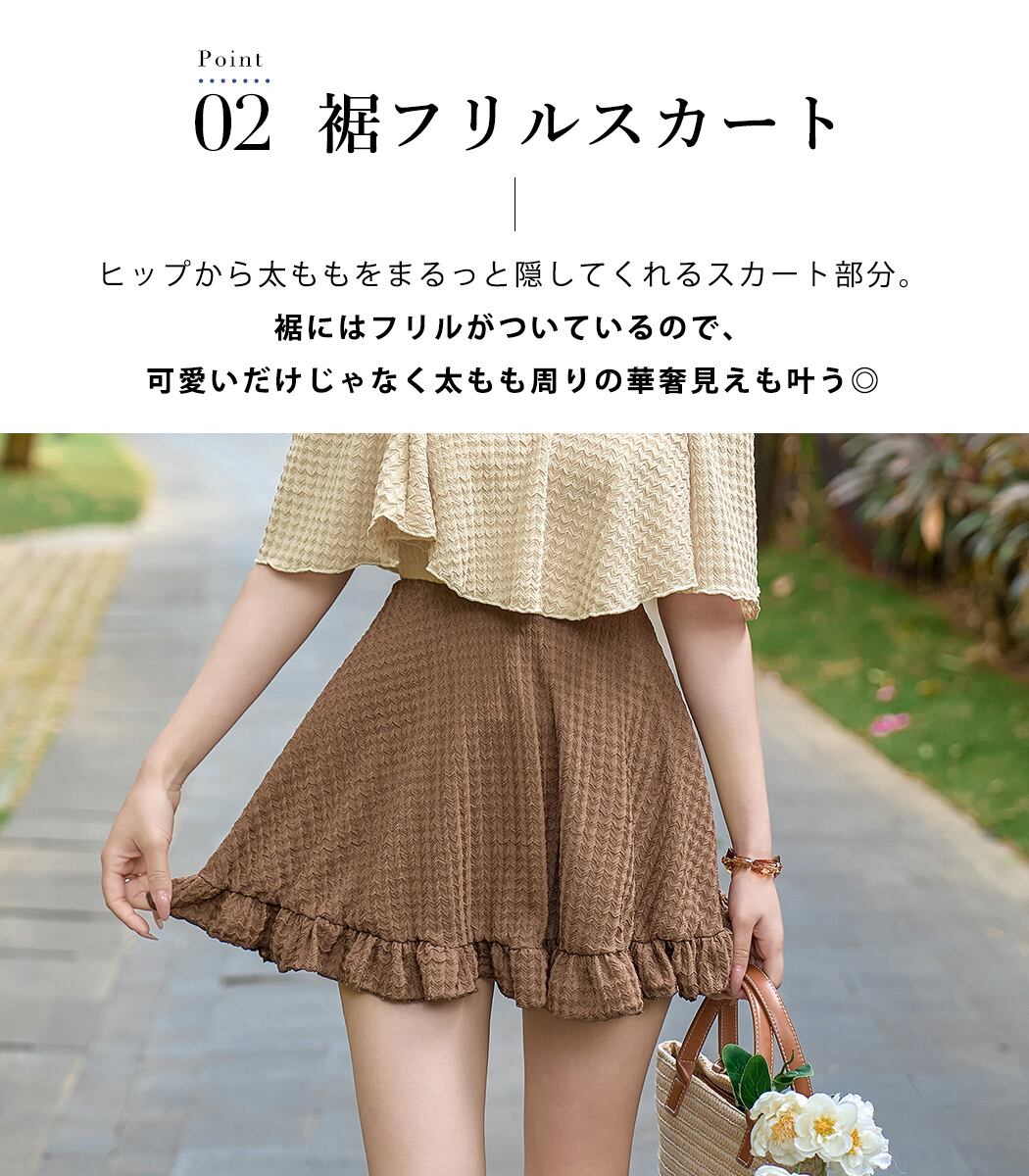 ヒップから太ももをまるっと隠してくれるスカート部分。