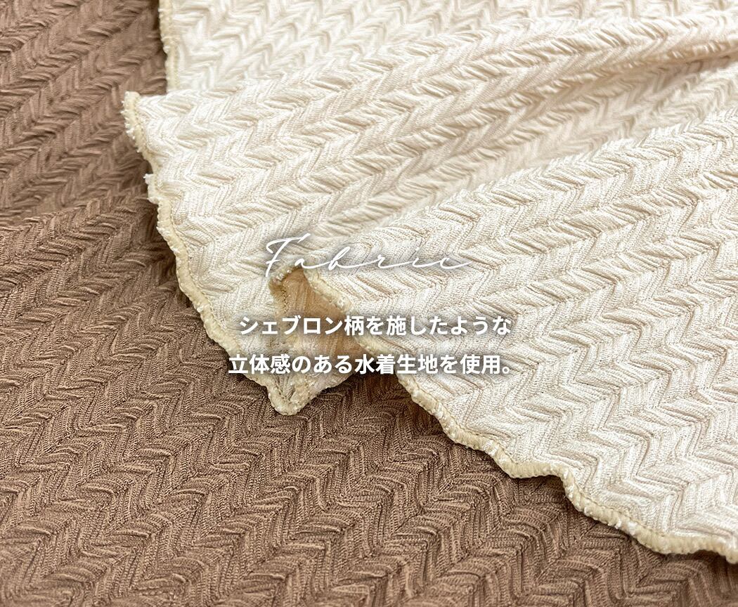 シェブロン柄を施したような立体感のある水着生地を使用。