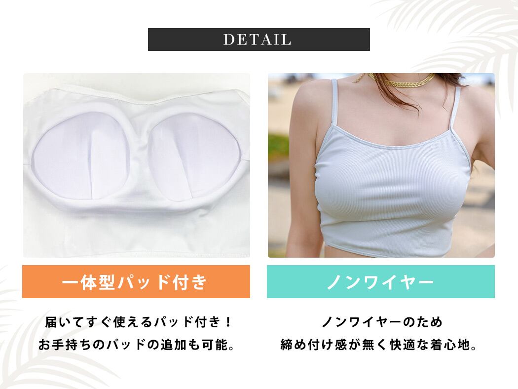 ブラはシンプルなキャミソール風デザイン。
