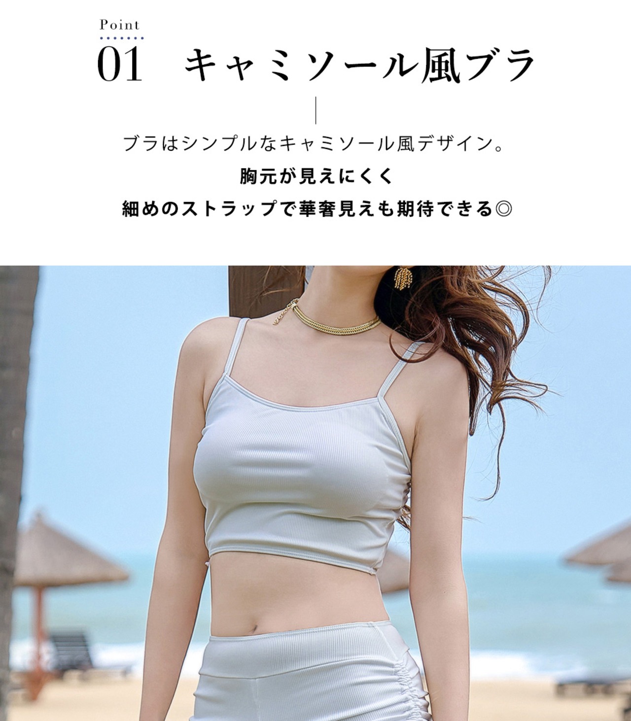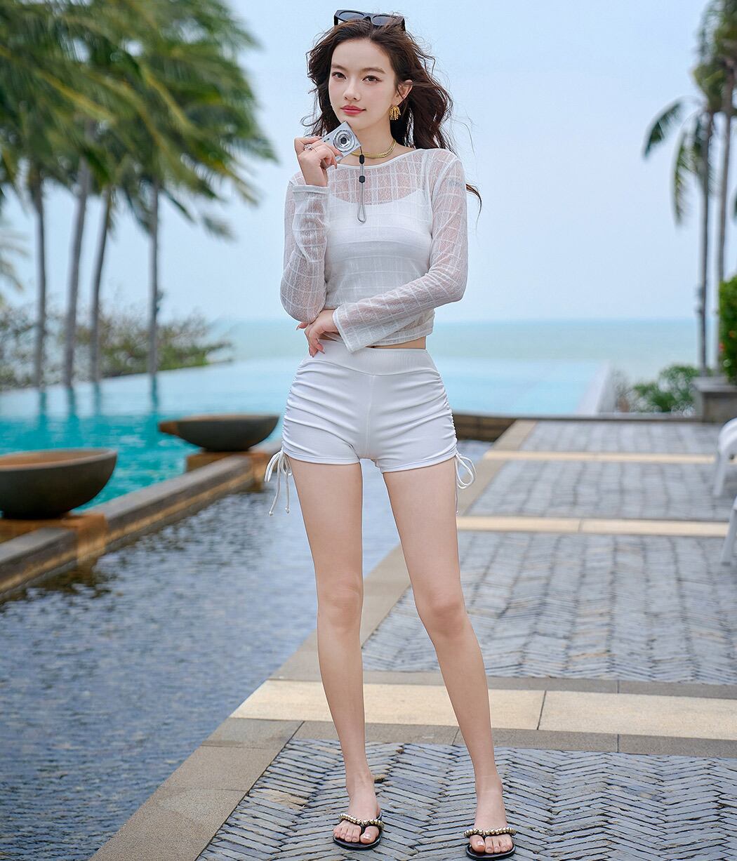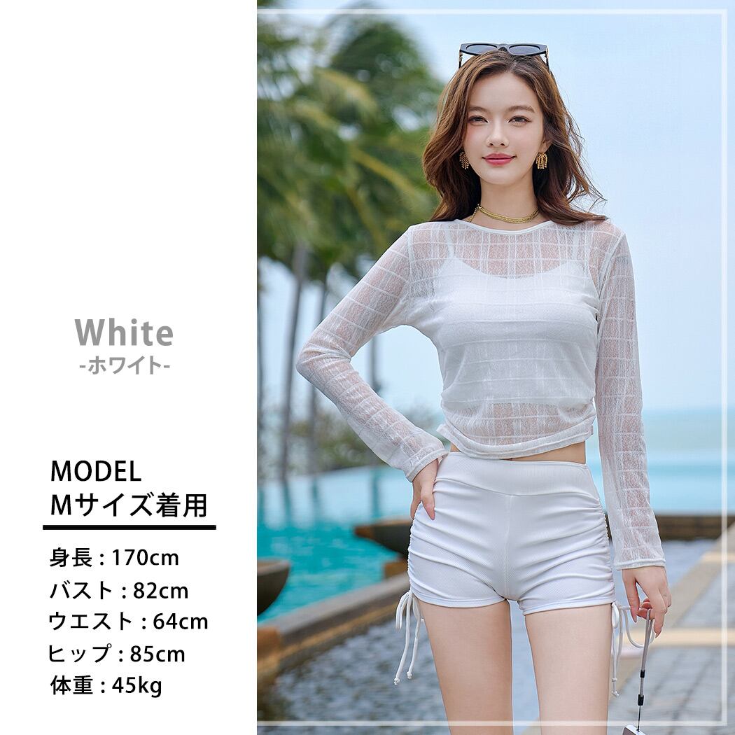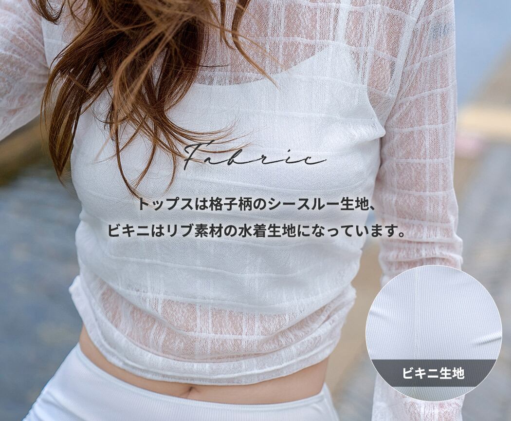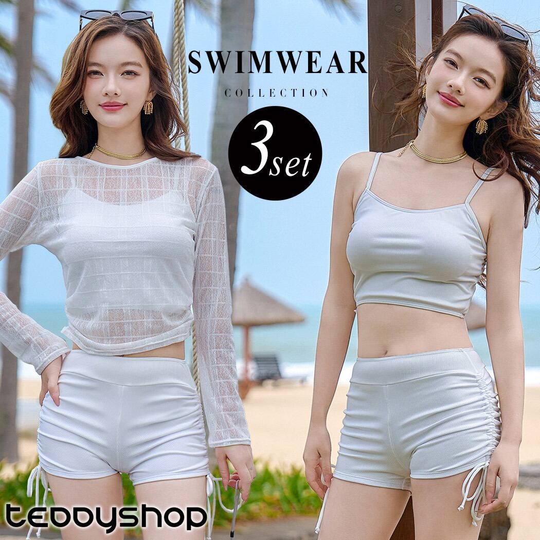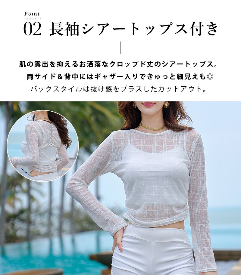 シアートップスの透け感が今っぽい3点セット水着