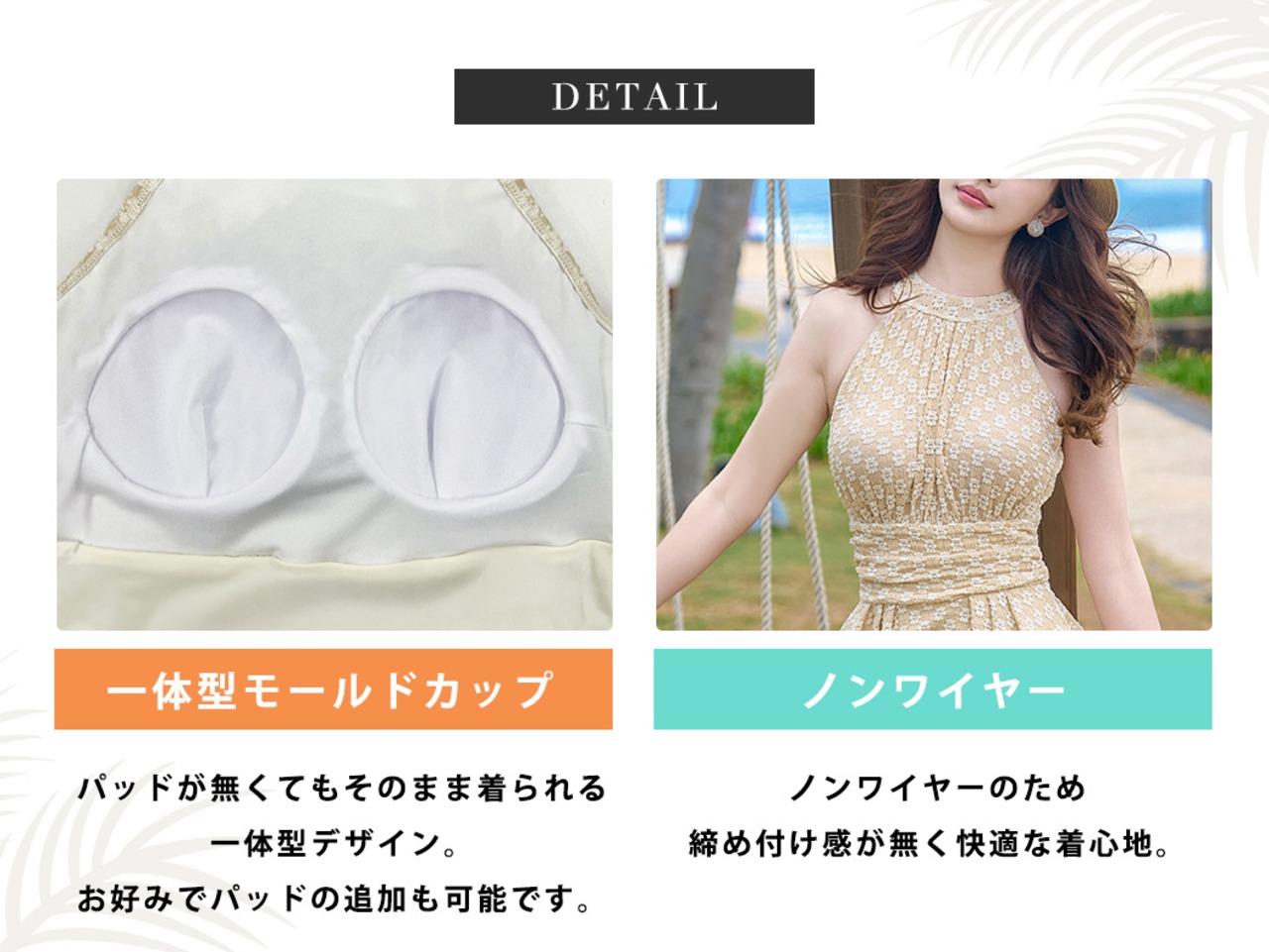 パッドが無くてもそのまま着られる一体型デザイン。