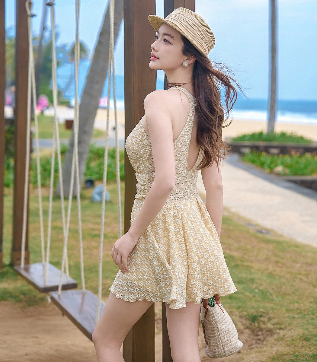 ハイネックワンピース水着。