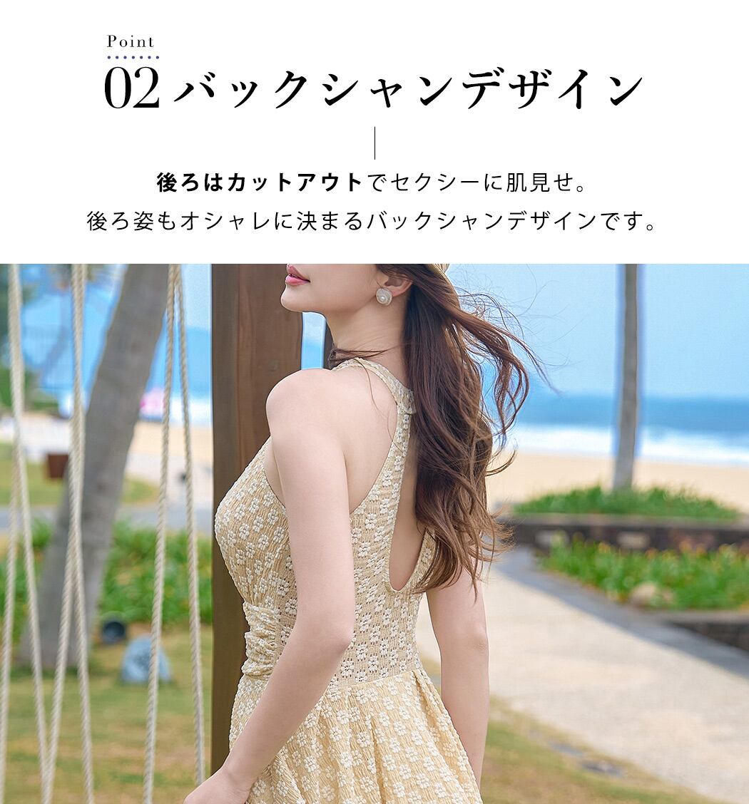 後ろはカットアウトでセクシーに肌見せ。