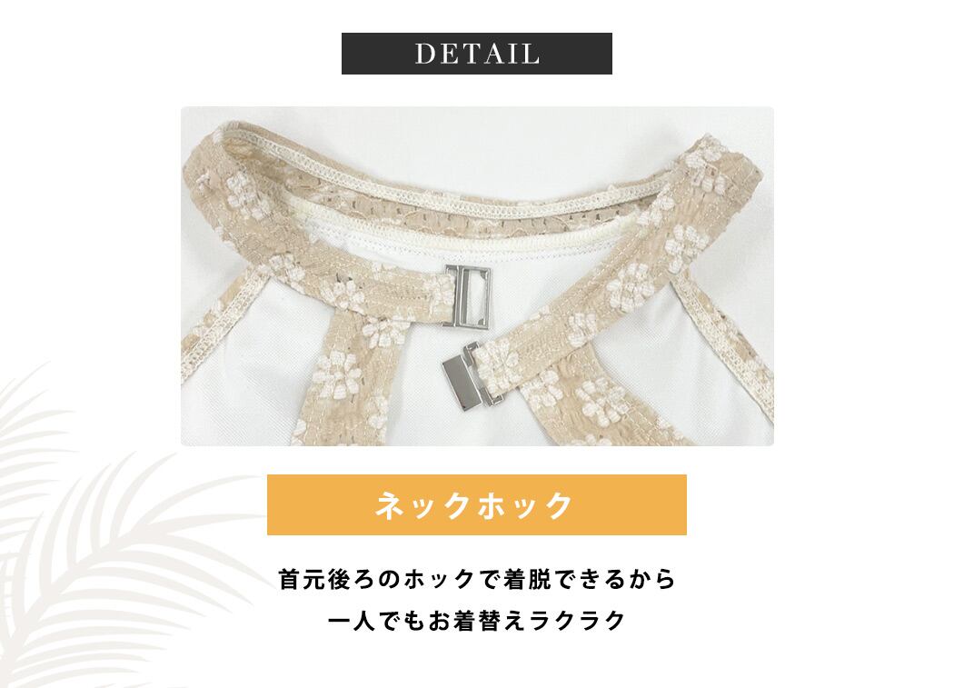 首元後ろのホックで着脱できるから