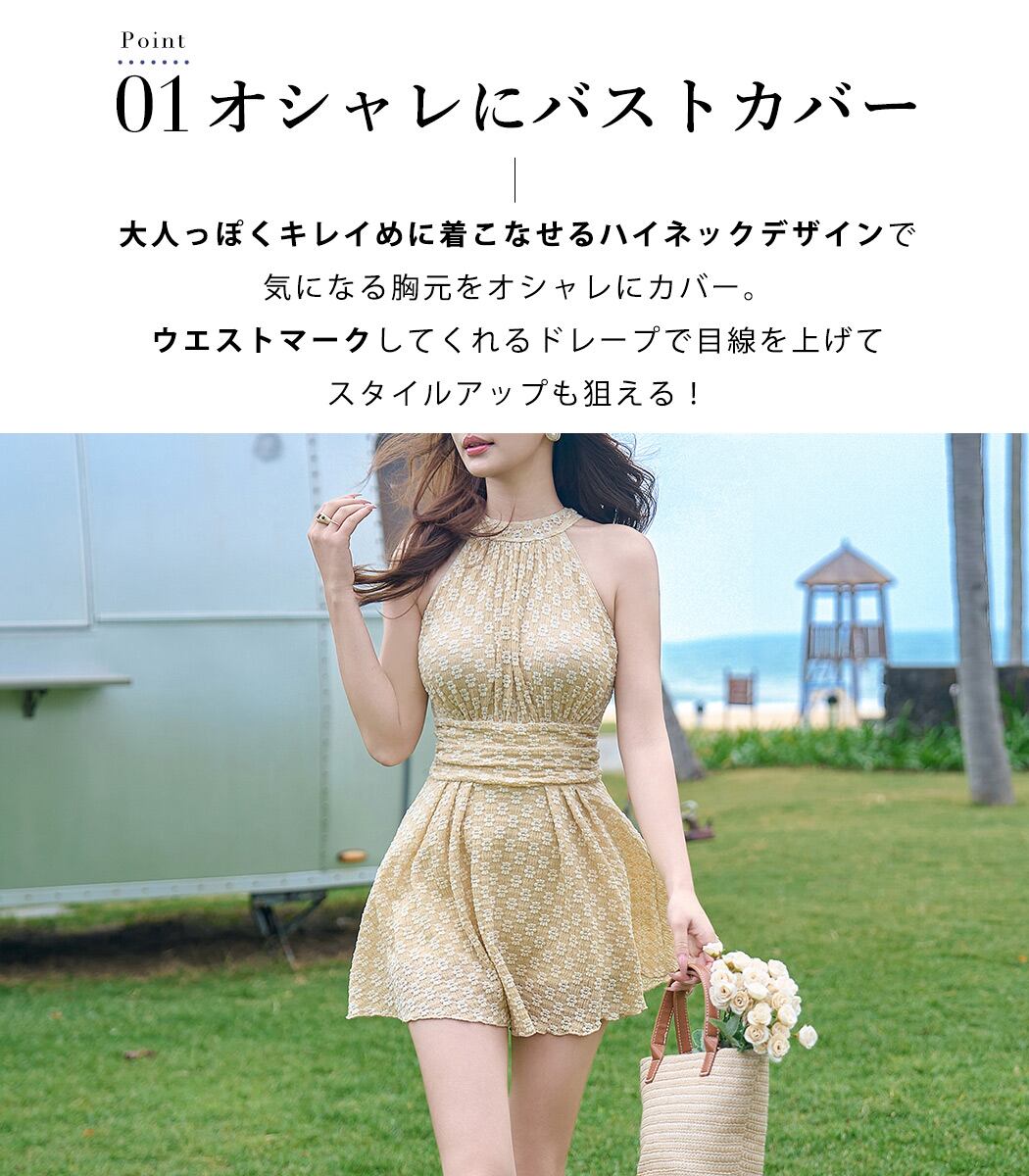 レディース ワンピース水着 ハイネック