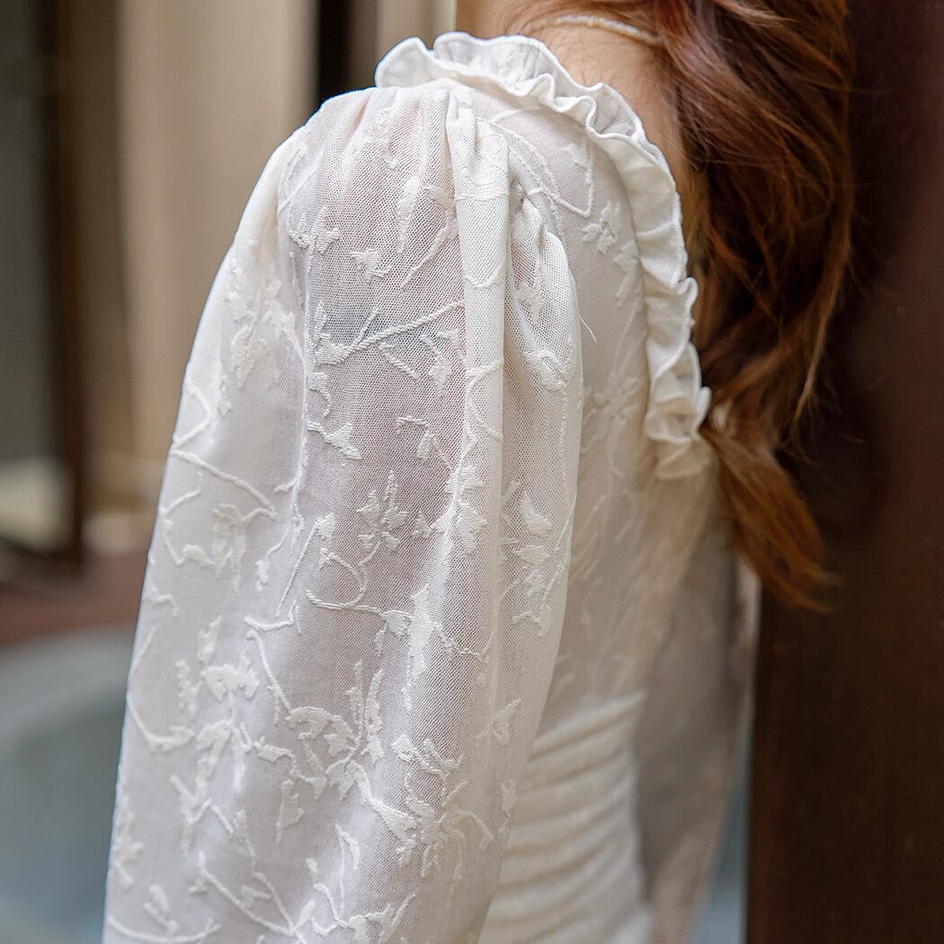 長袖のパフスリーブで腕を見せたくない方にもおすすめ!
