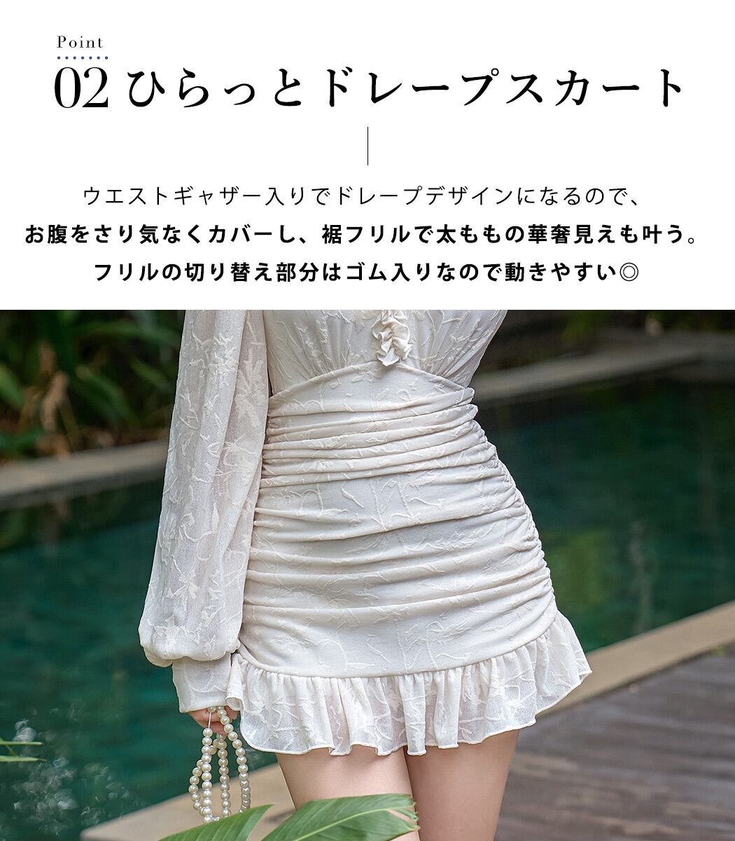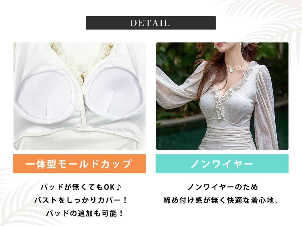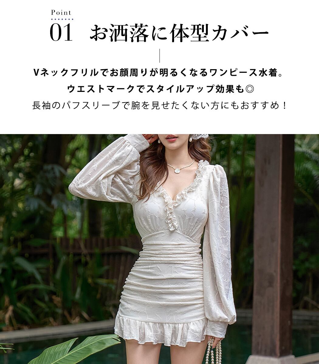 Vネックフリルでお顔周りが明るくなるワンピース水着。