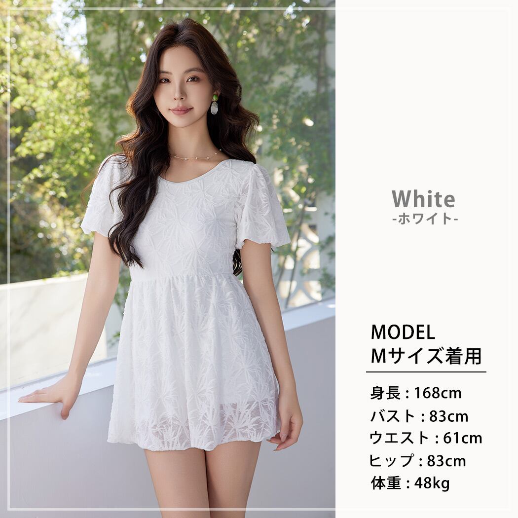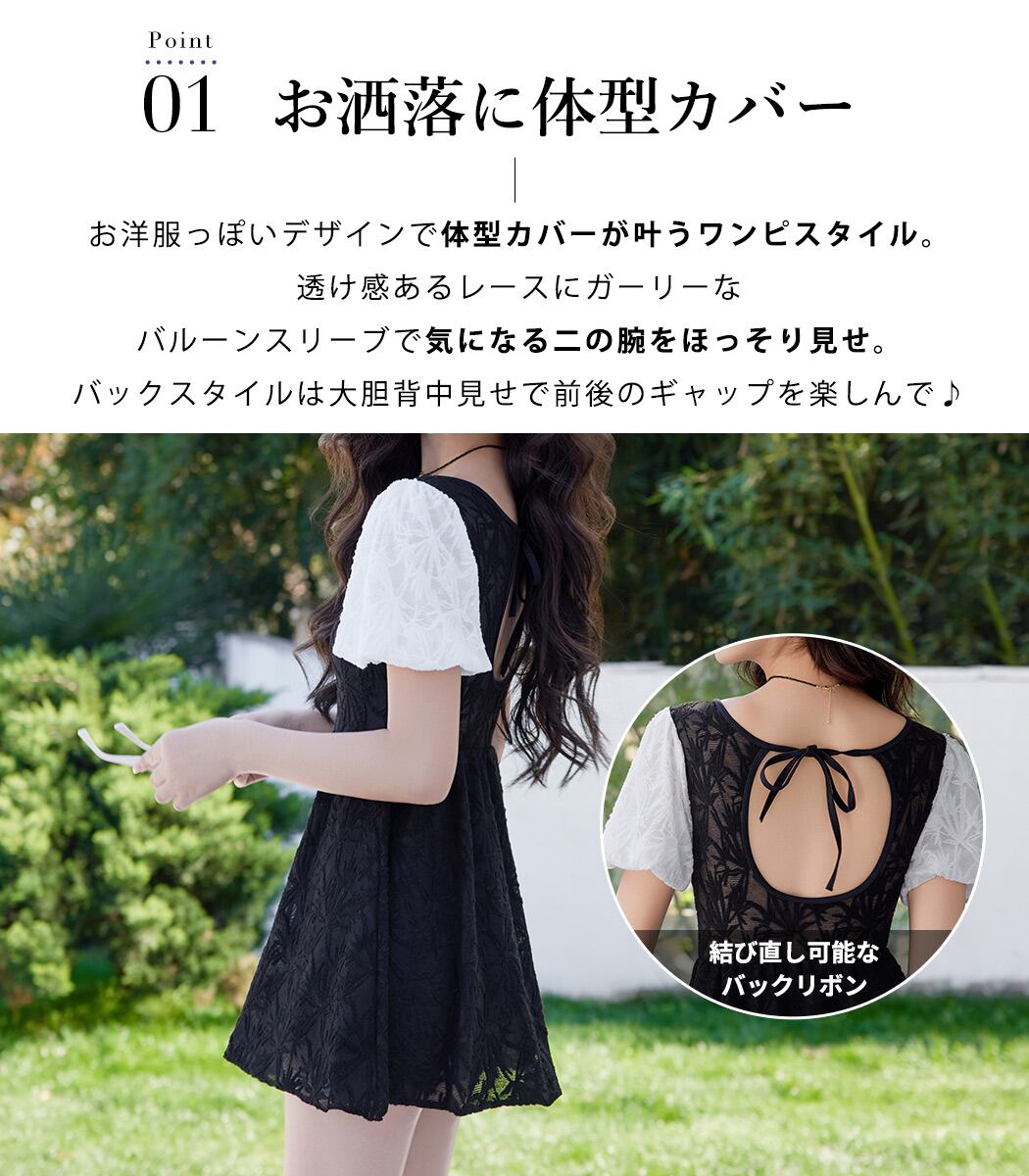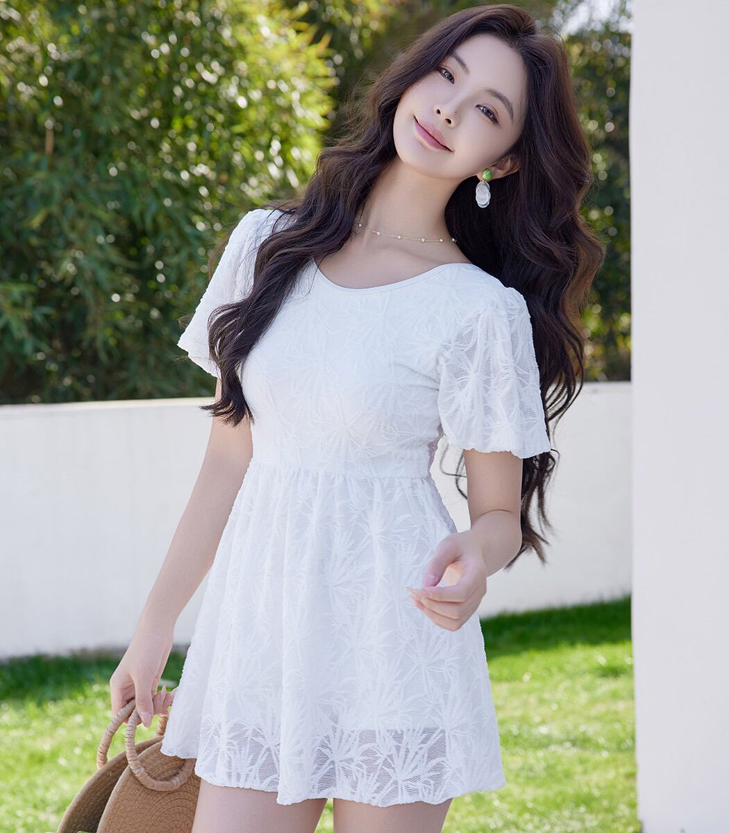控えめな透け感が大人可愛いレースワンピース水着