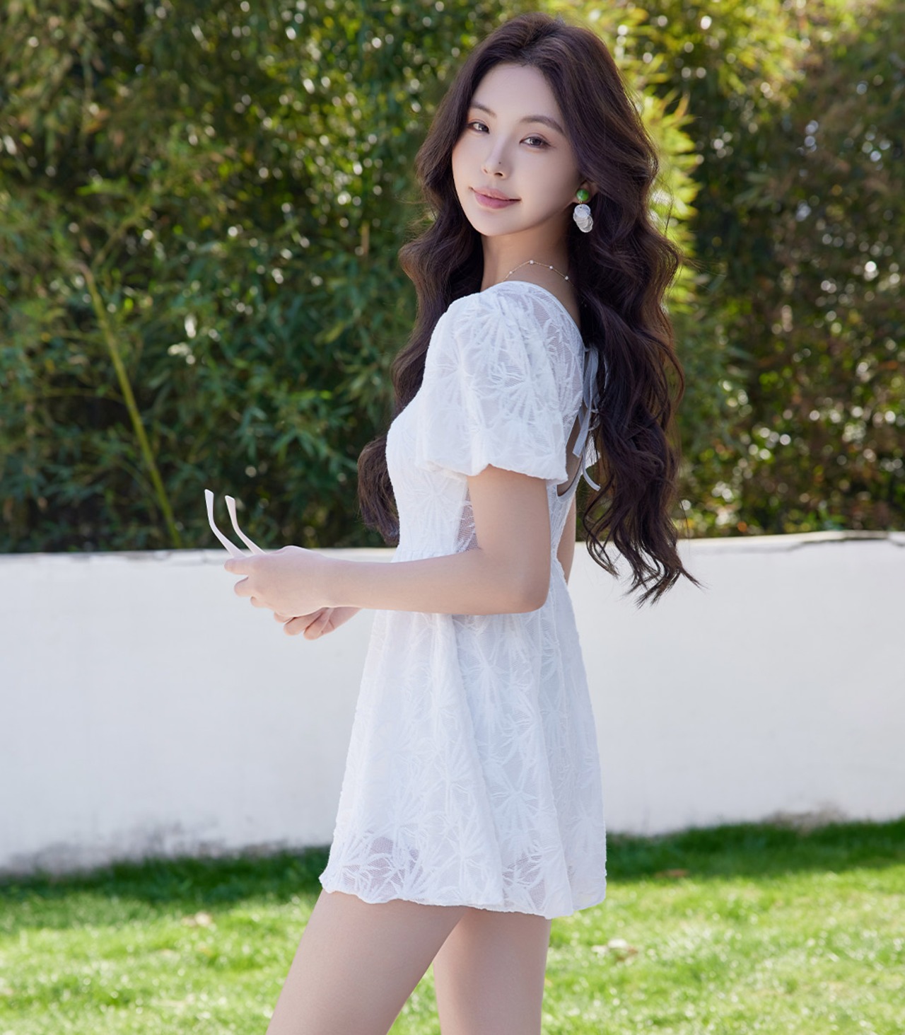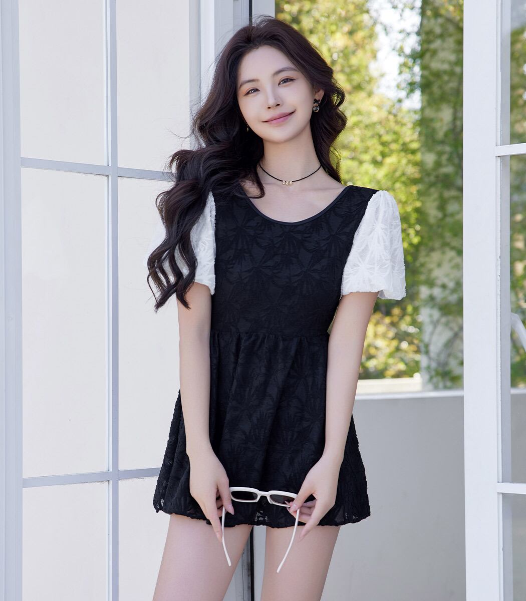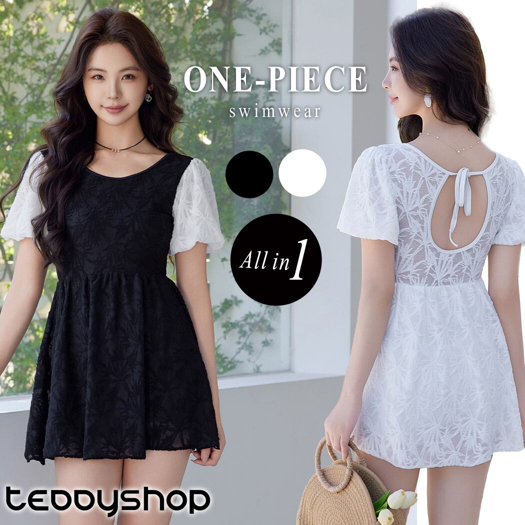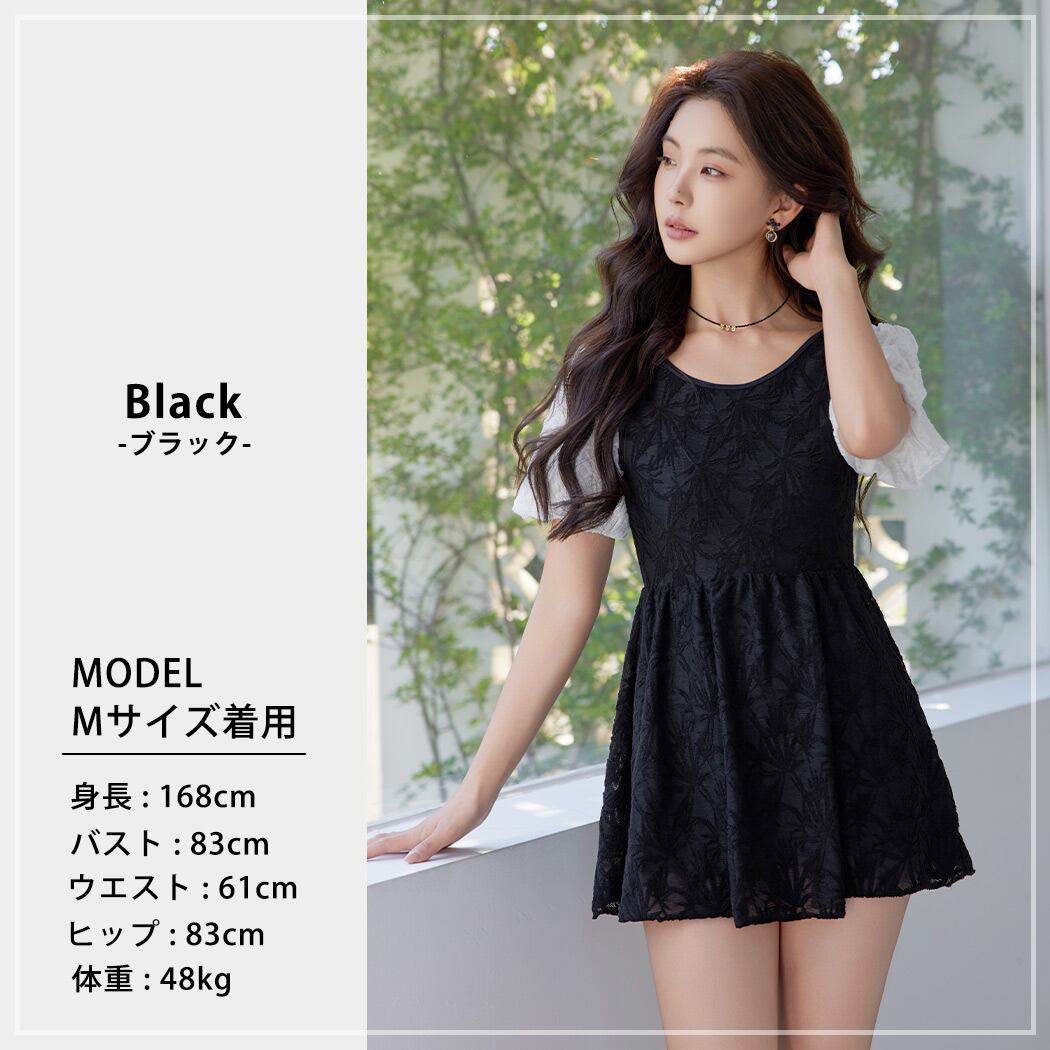 控えめな透け感が大人可愛いレースワンピース水着