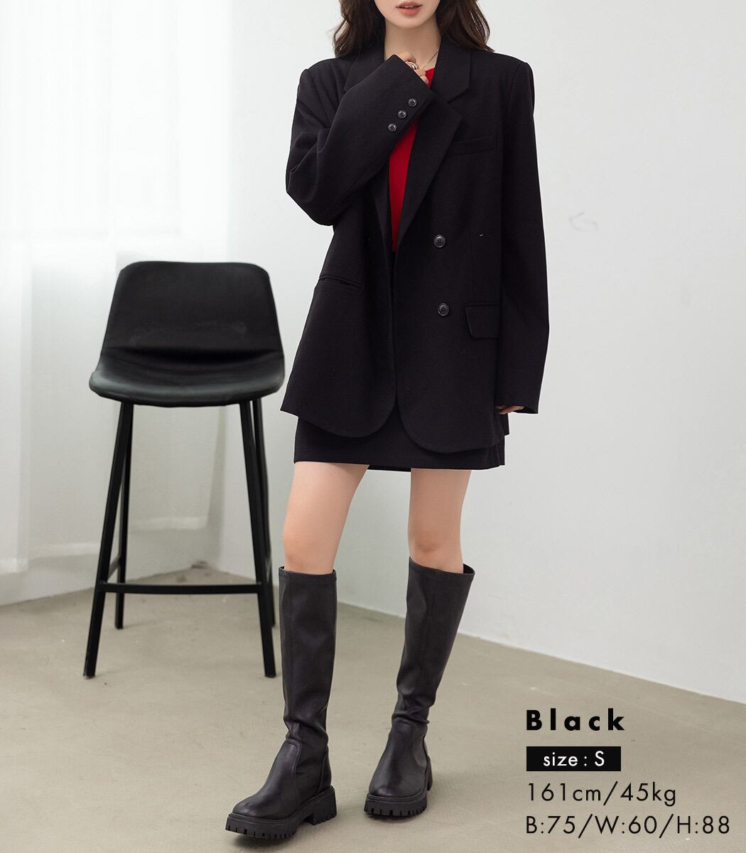 マニッシュなテーラードとミニスカートの