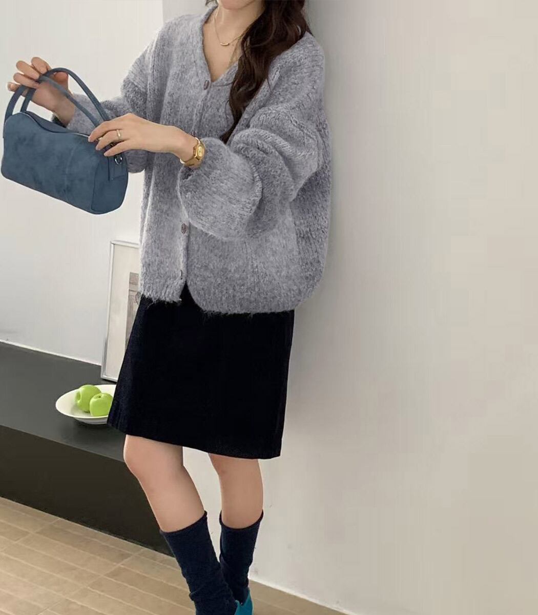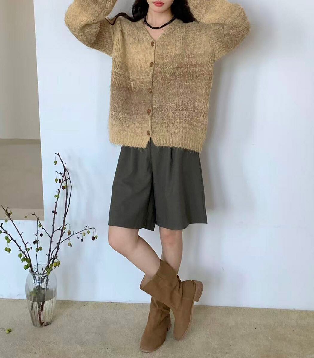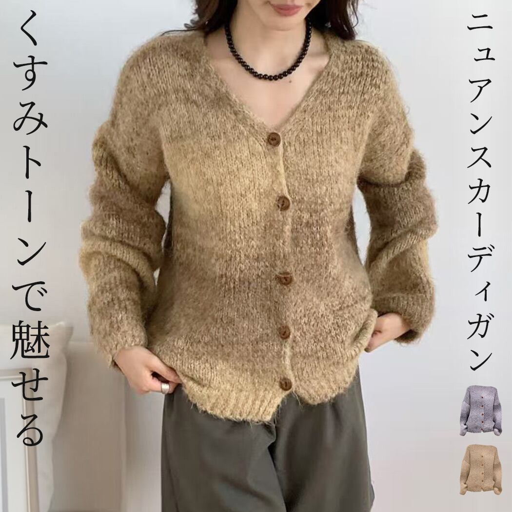 くすみトーンで魅せるニュアンスカーディガン