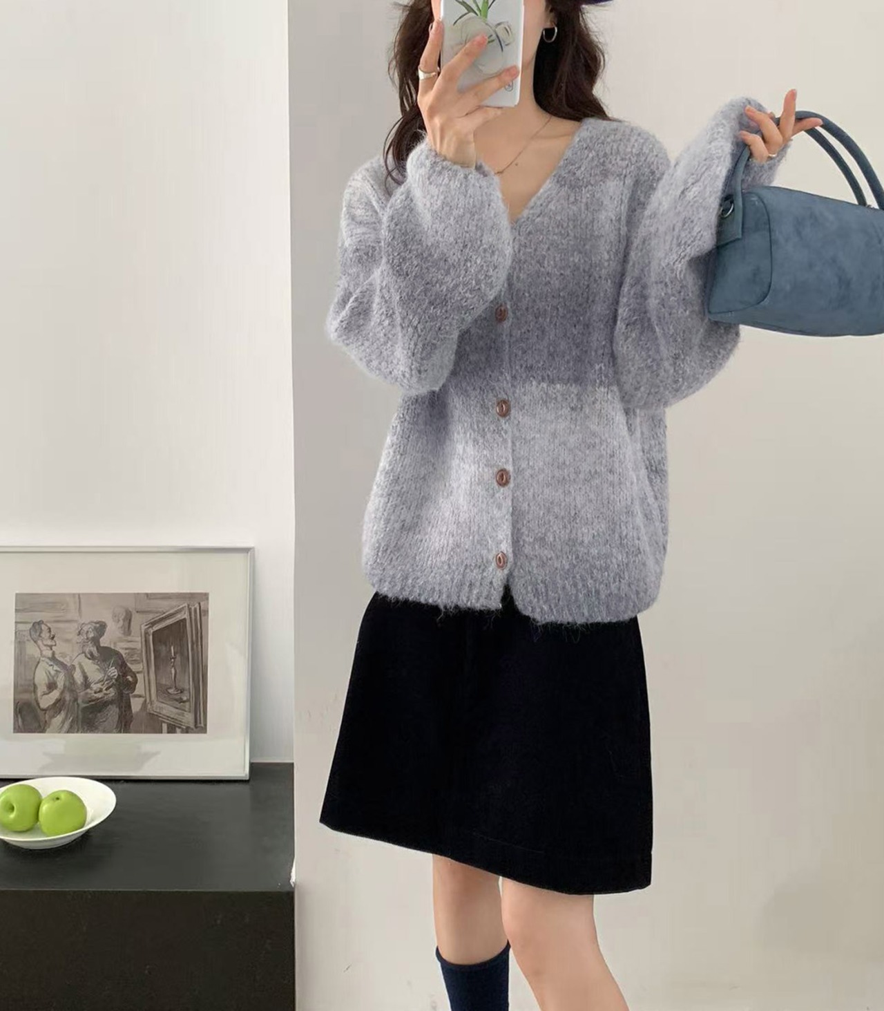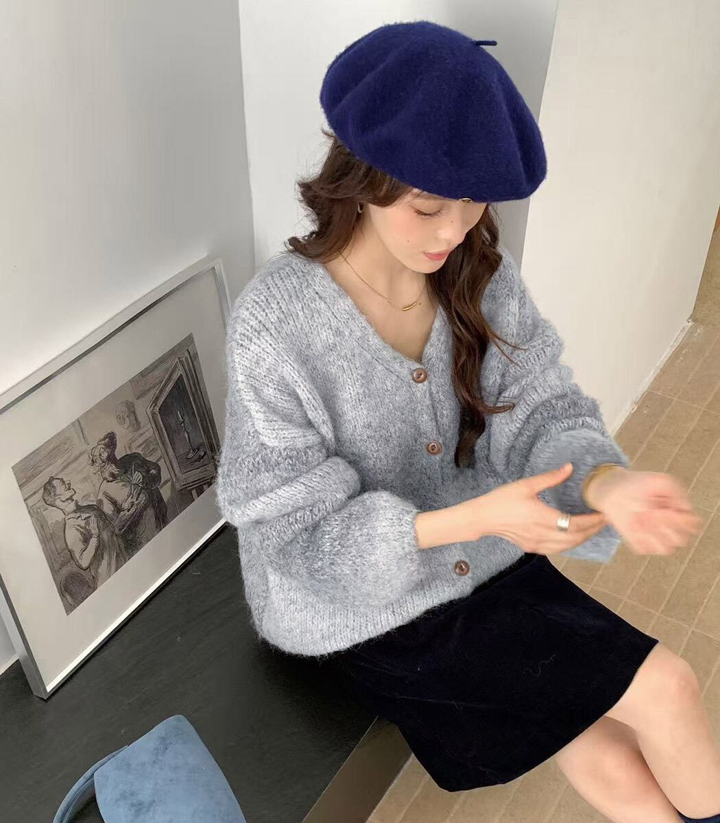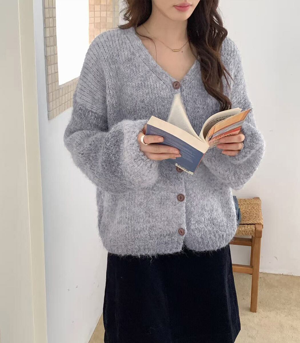 くすみトーンで魅せるニュアンスカーディガン
