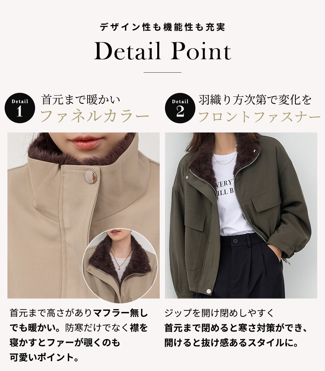 羽織り方次第で変化を フロントファスナー
