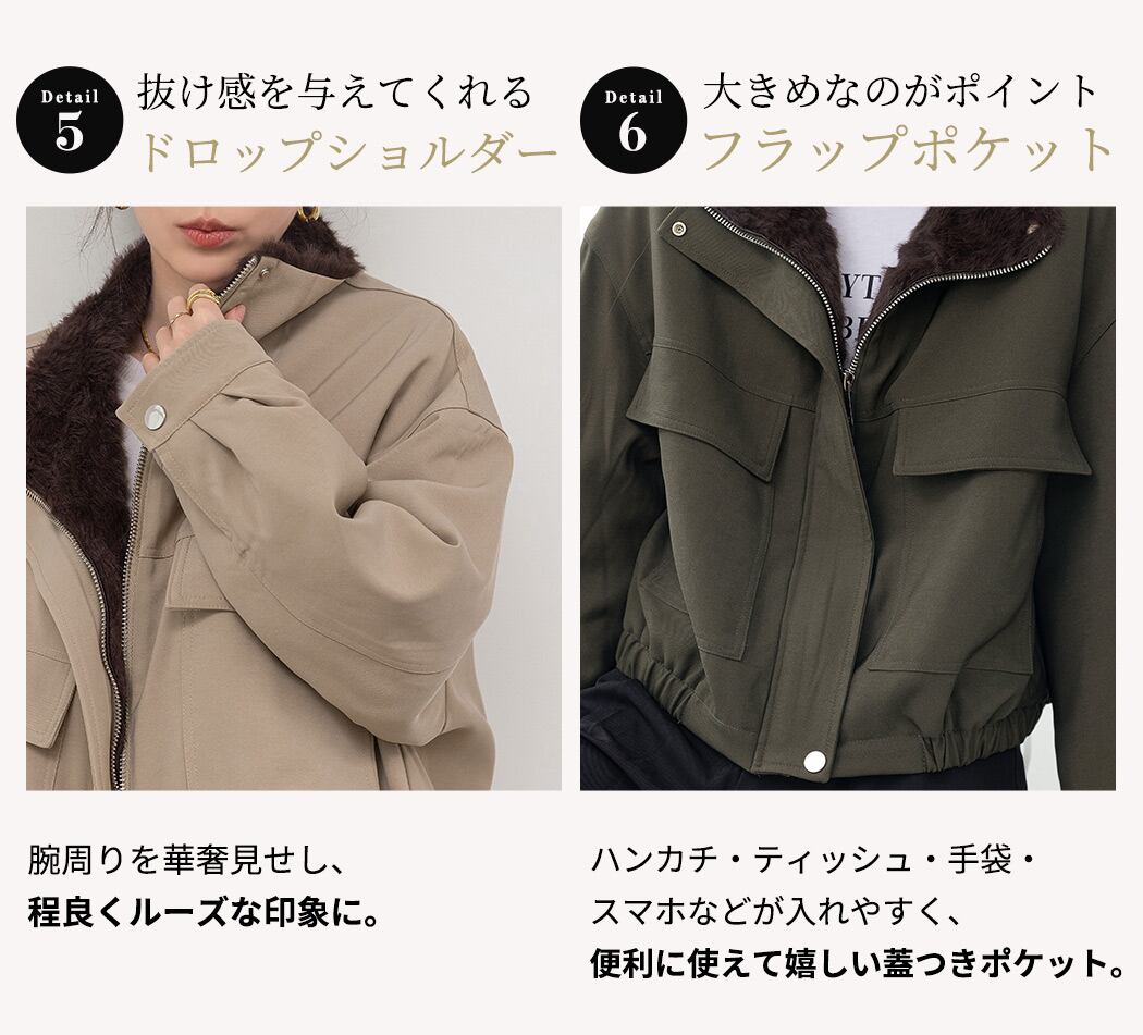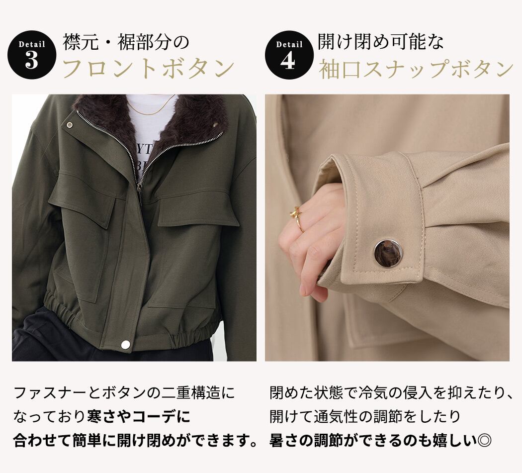 【宅配便】「きれいめなミリタリー」ブルゾン フェイクファー レディース 長袖 防寒/tops2330