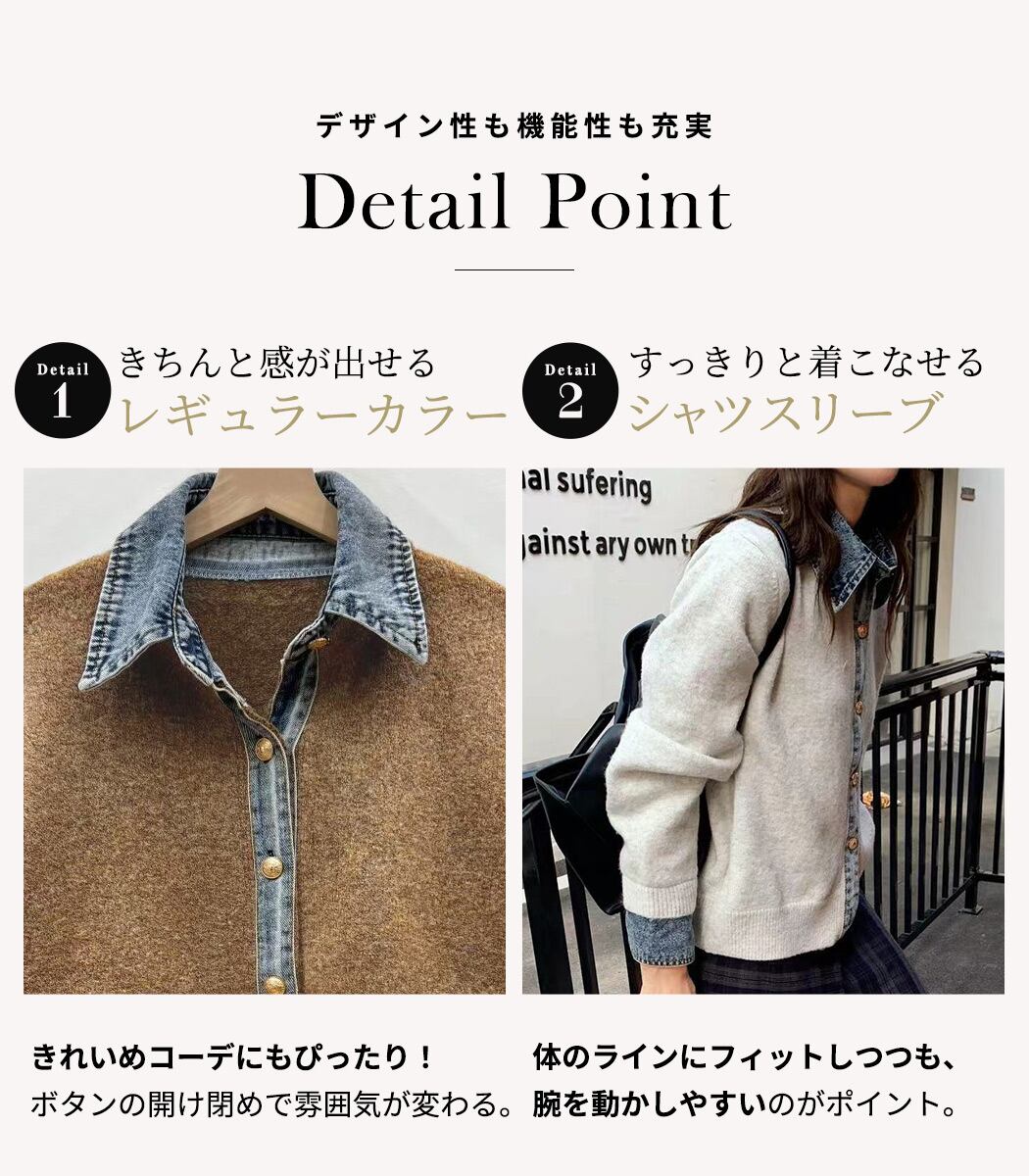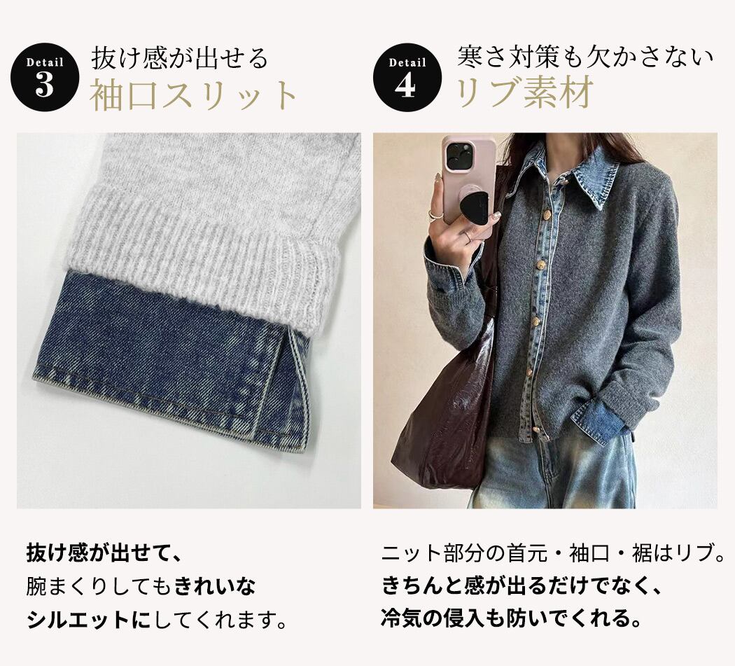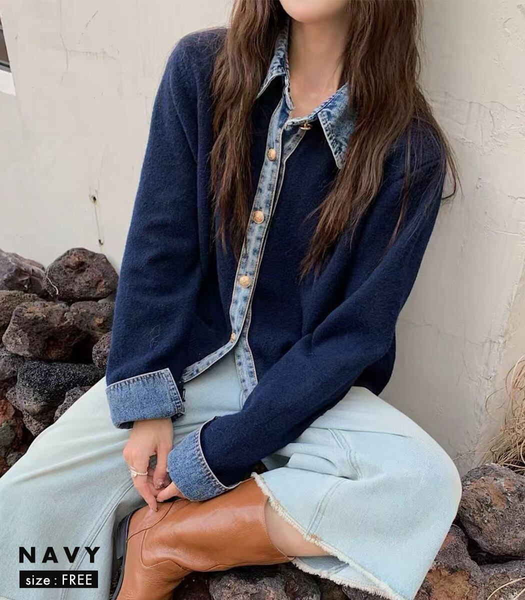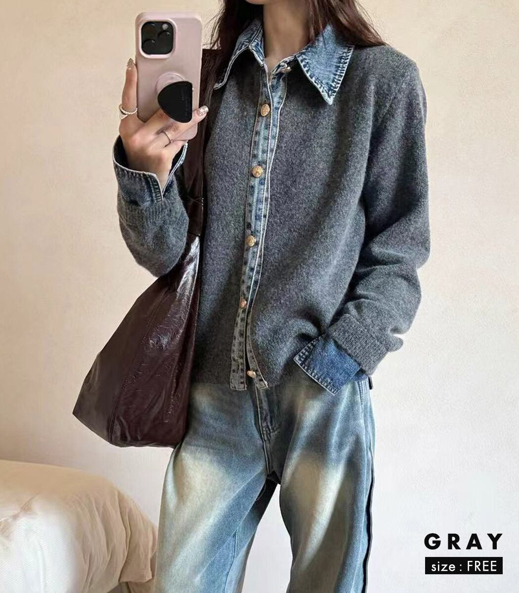 デニムシャツをレイヤードしたような魅力的なデザイン。