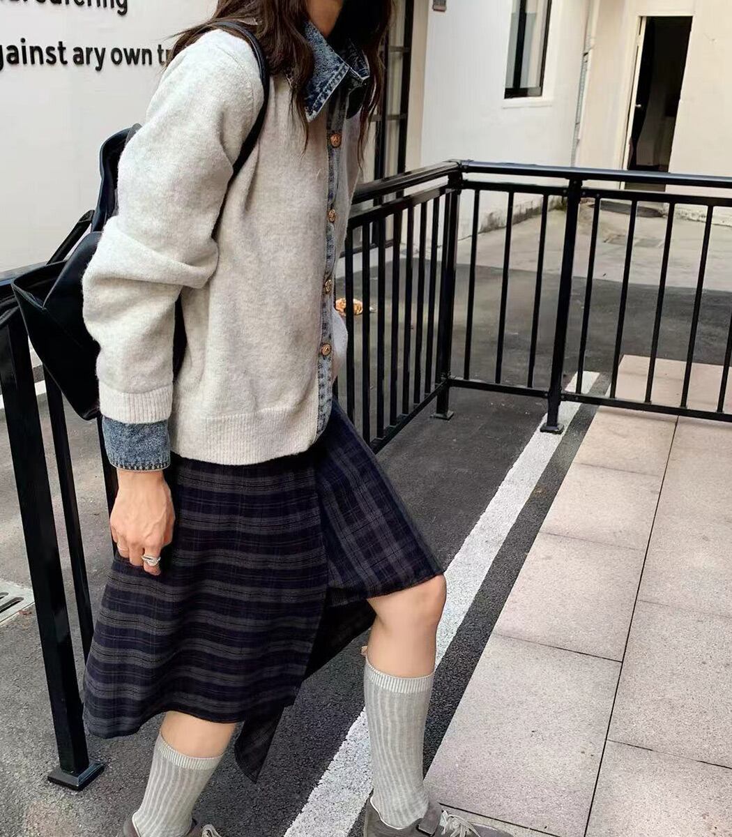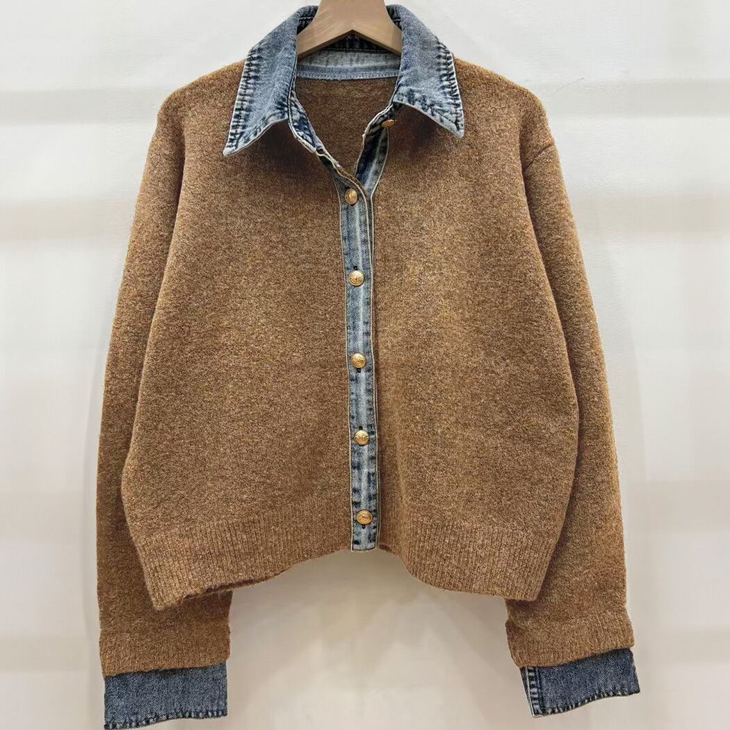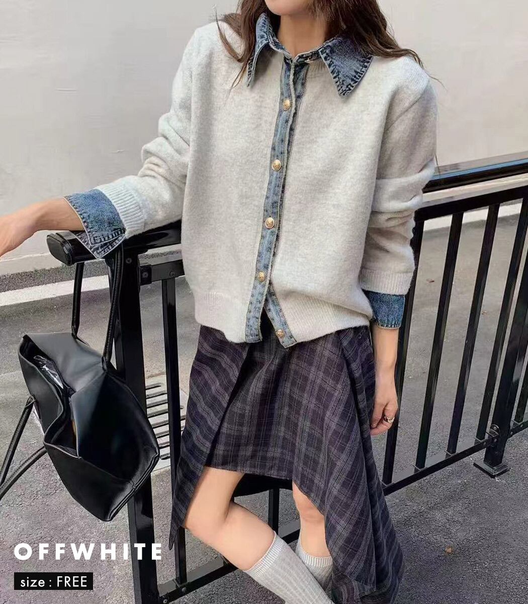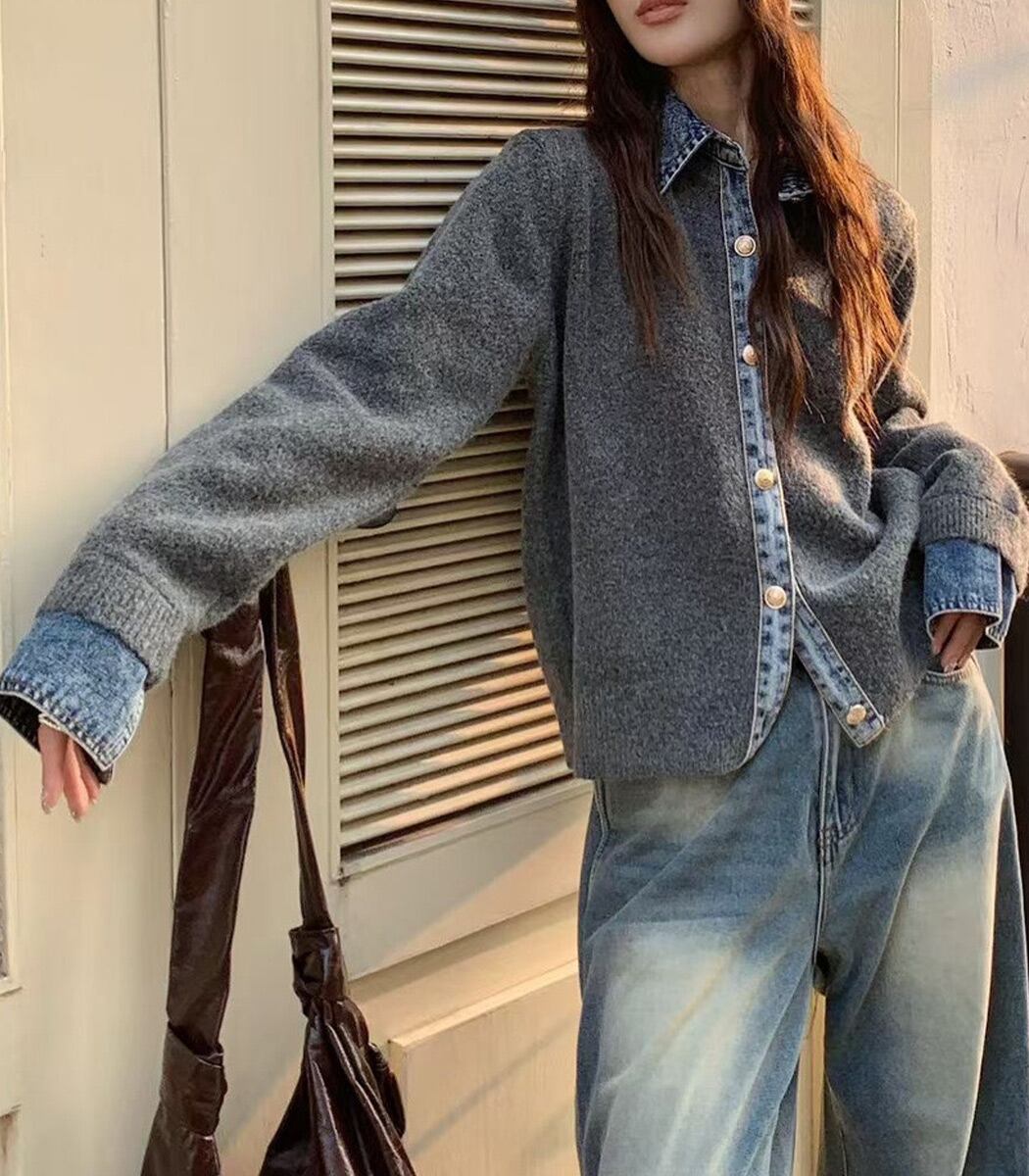 デニムシャツをレイヤードしたような魅力的なデザイン。