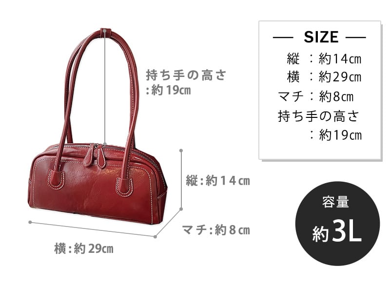 長めのバッグハンドルで肩に掛けやすい。