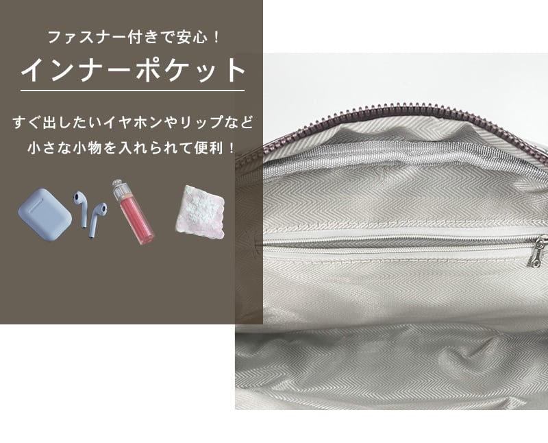 ファスナー付きで安心!インナーポケット