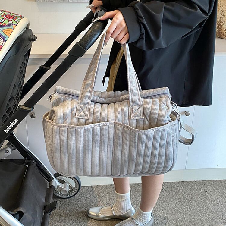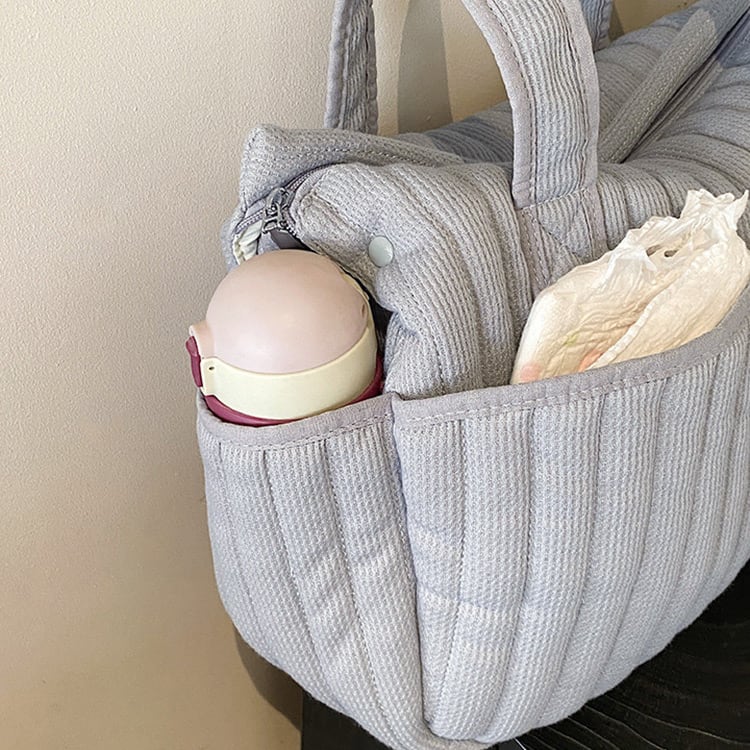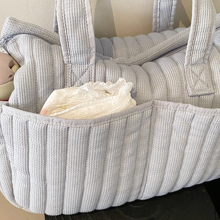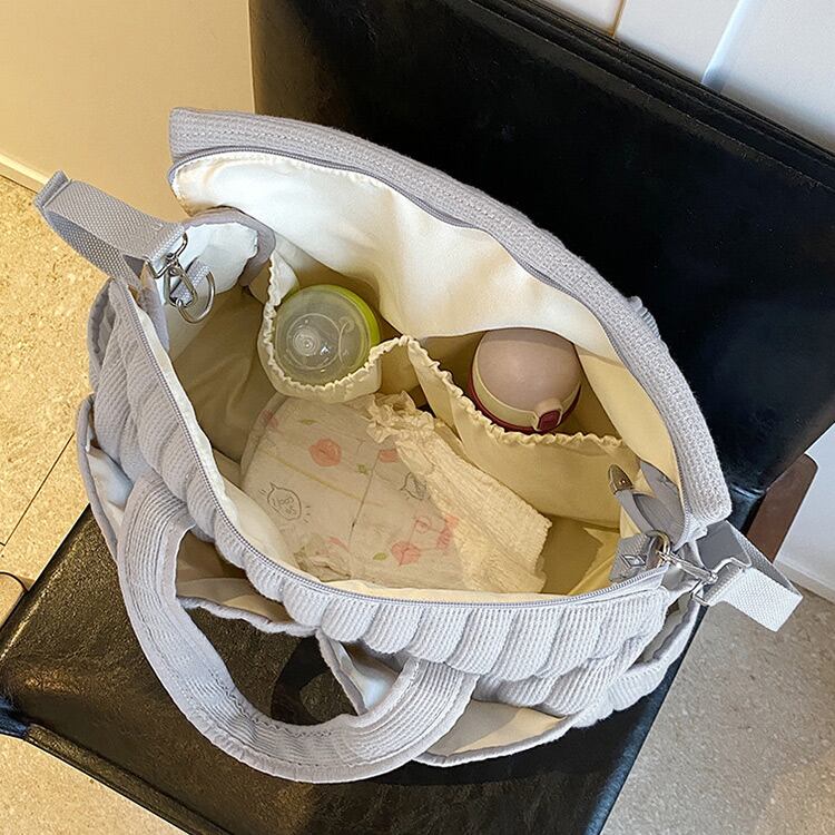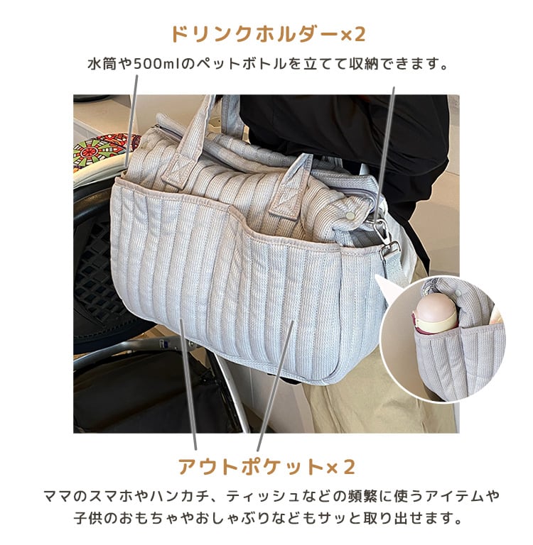 おしりふきやスタイ、哺乳瓶など分けて収納できます。