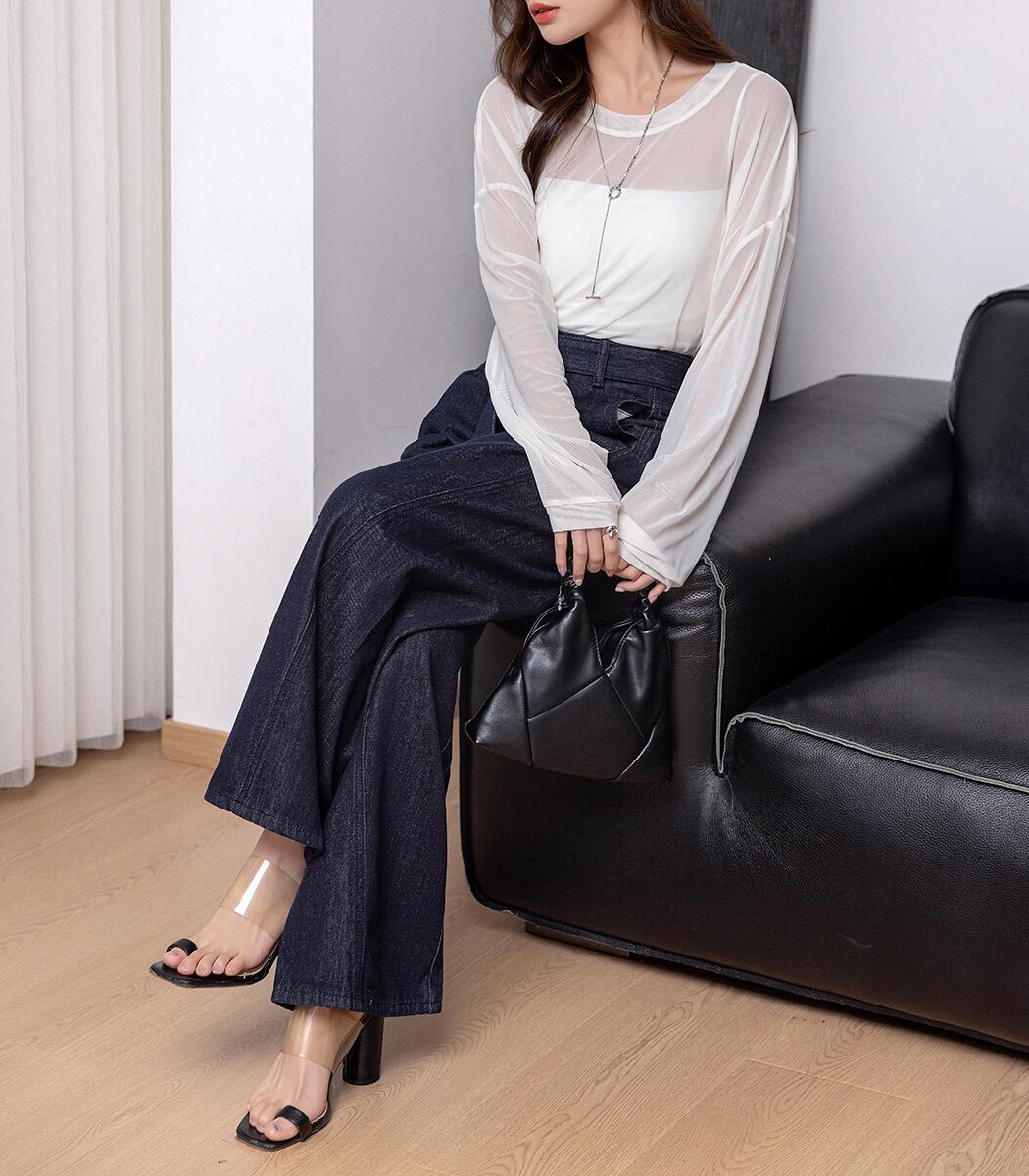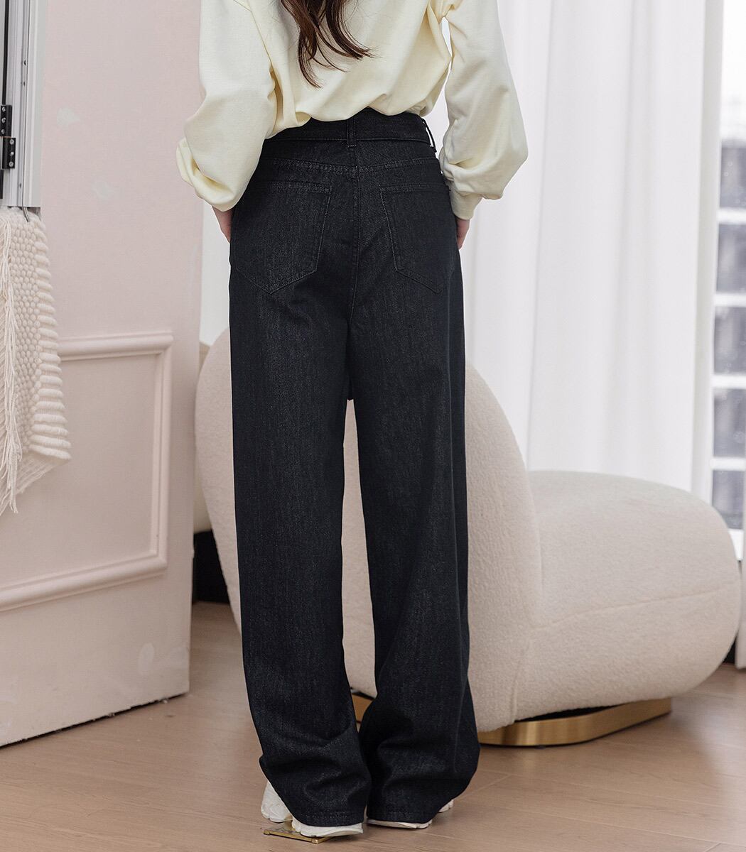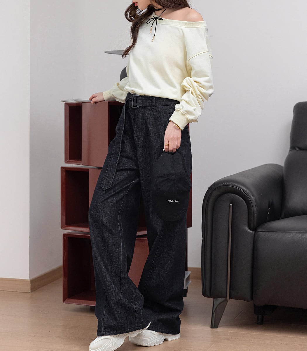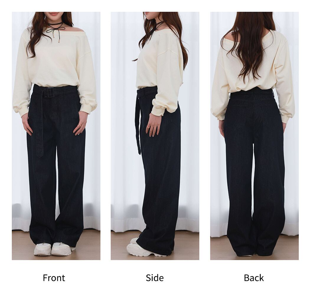 BELT & HIGH WAIST WIDE DENIM PANTS