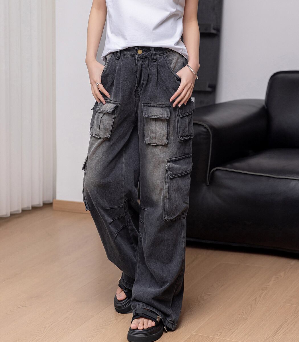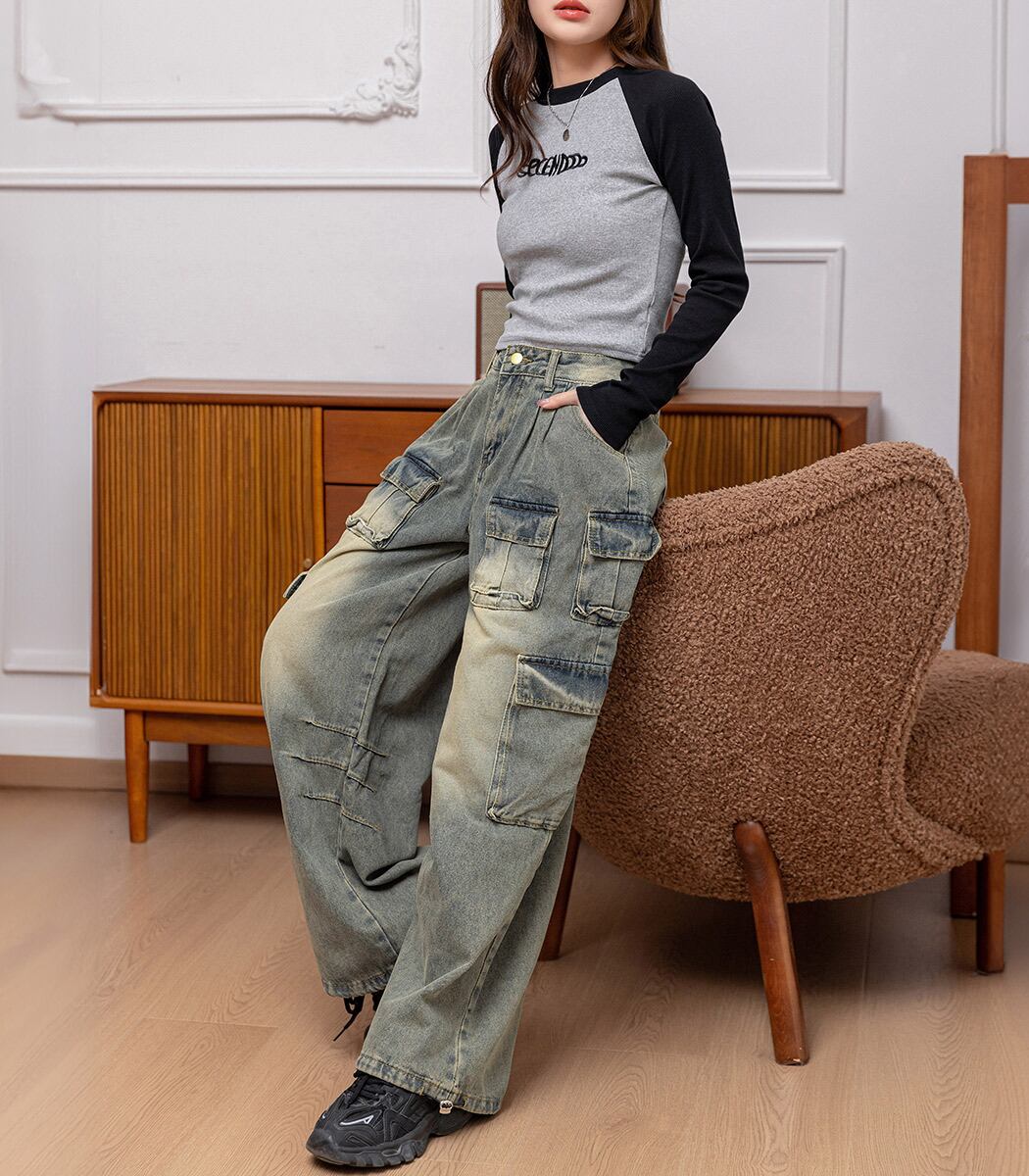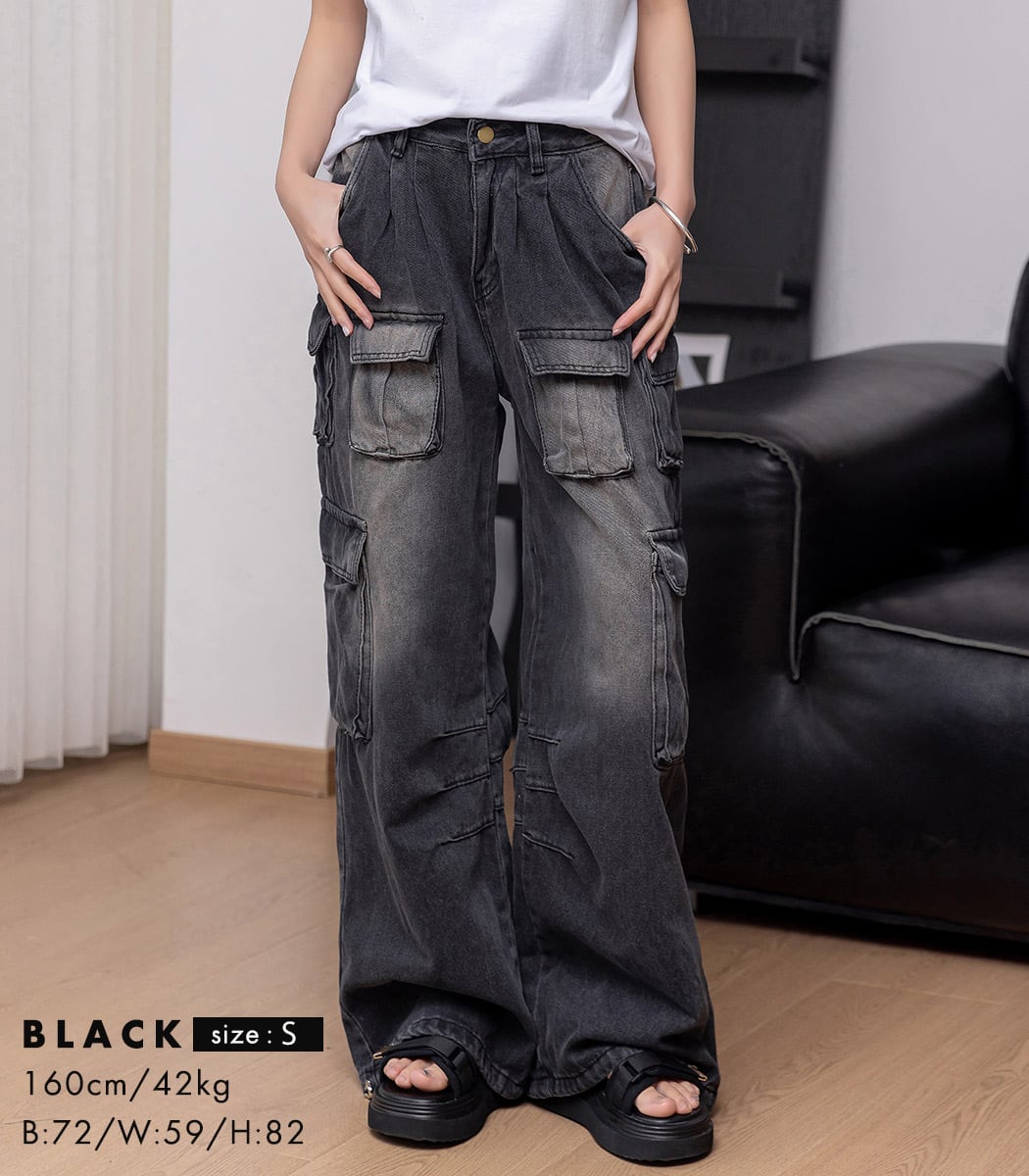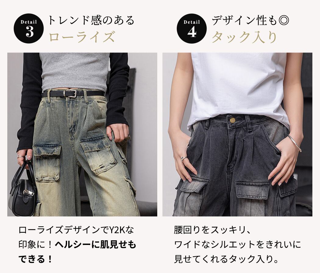 【宅配便】「ローライズでウエストとの対比」ワイドパンツ ストレート デニム ボトムス レディース/pants624