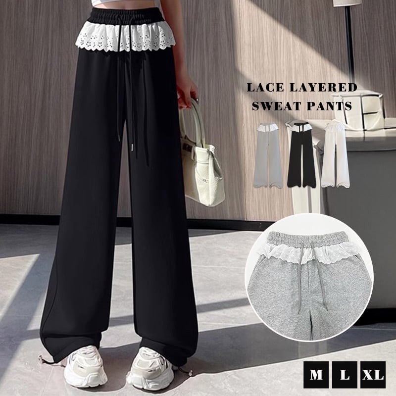 【宅配便】「ジャンル別レイヤード」スウェットパンツ ショート レース レイヤード風 レディース/pants626