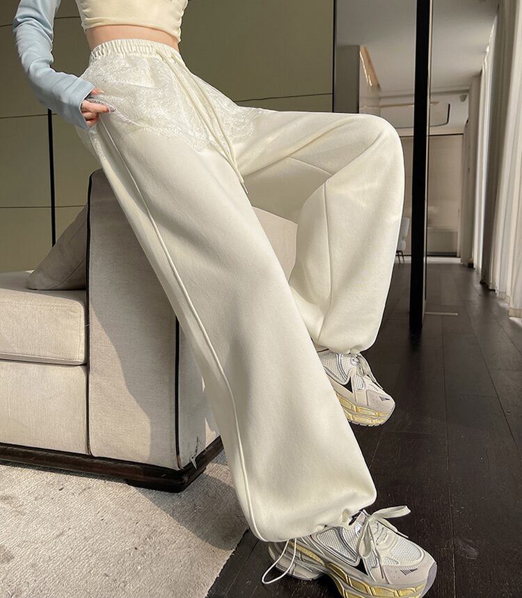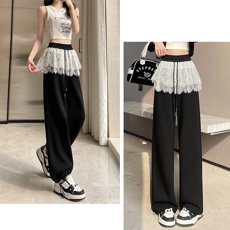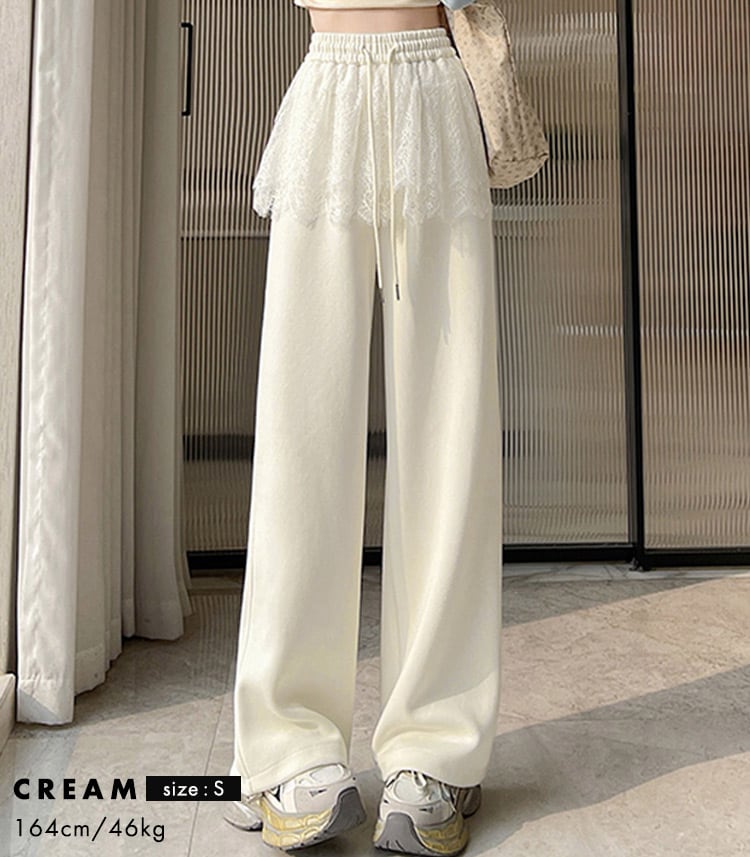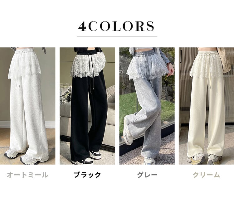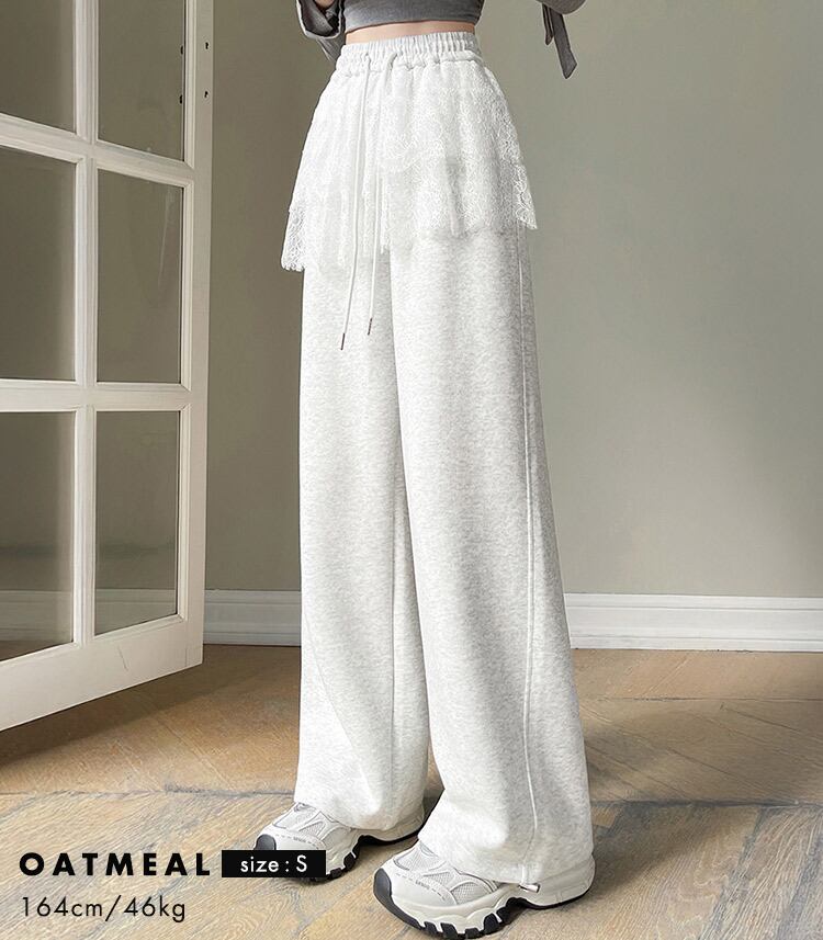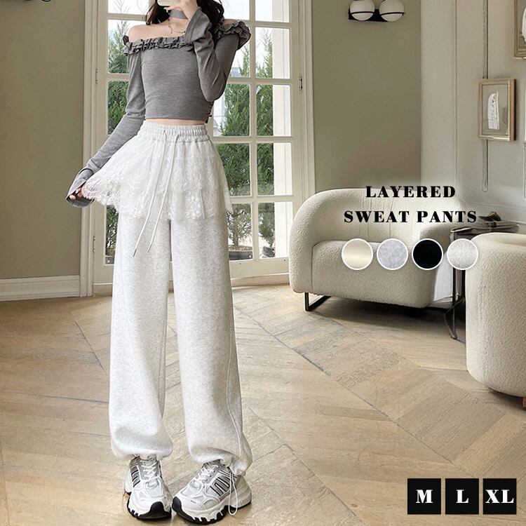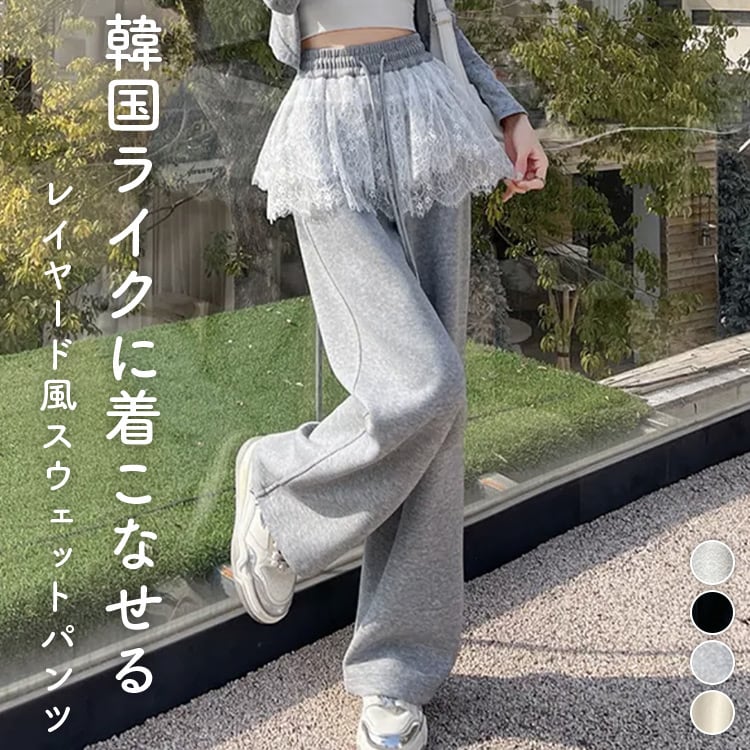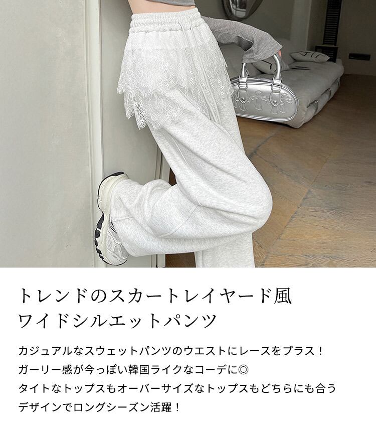 【宅配便】「さりげなカバーに期待」スウェットパンツ レース レイヤード風 レディース 綿混/pants627