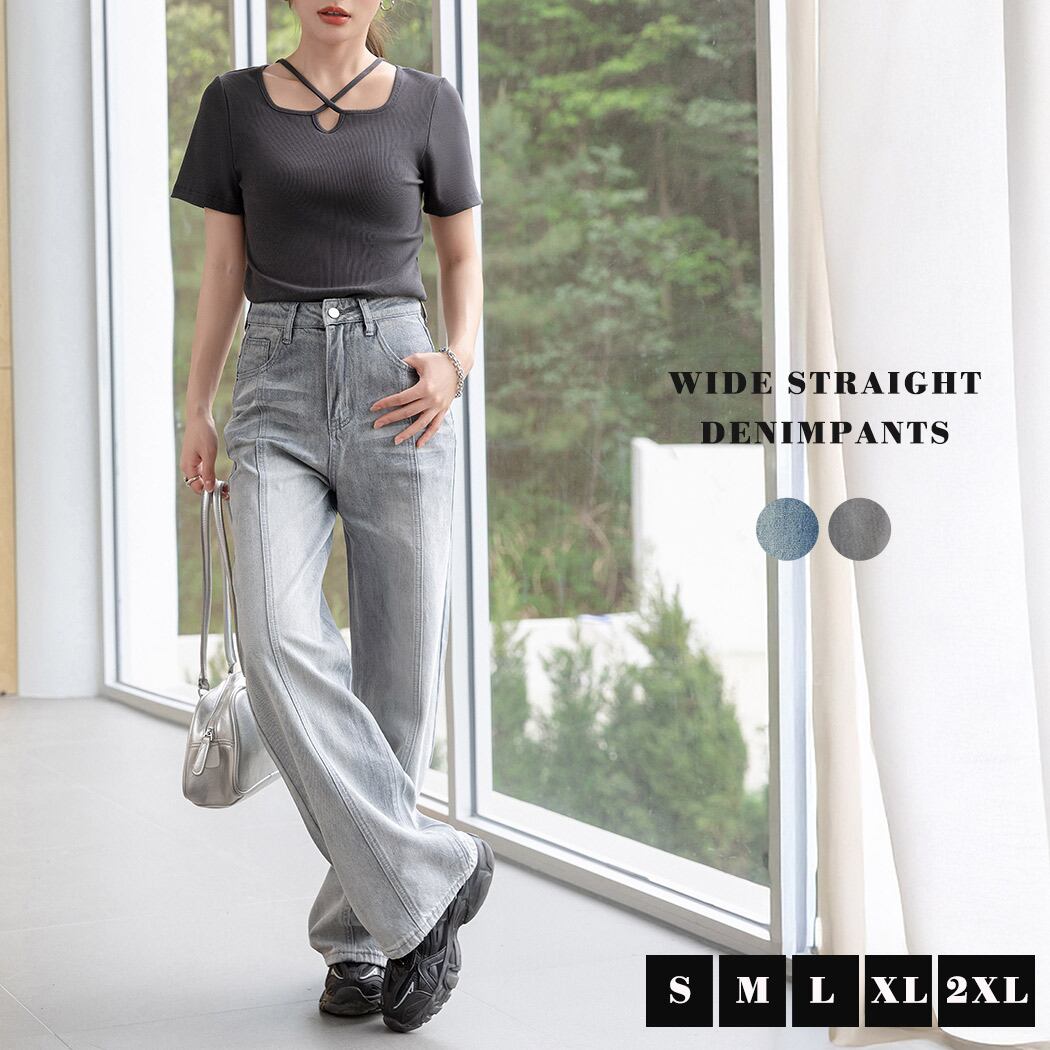 【宅配便】「脚カバー&キレイ見せに」ワイド ストレート デニム ワイドシルエット レディース/pants636