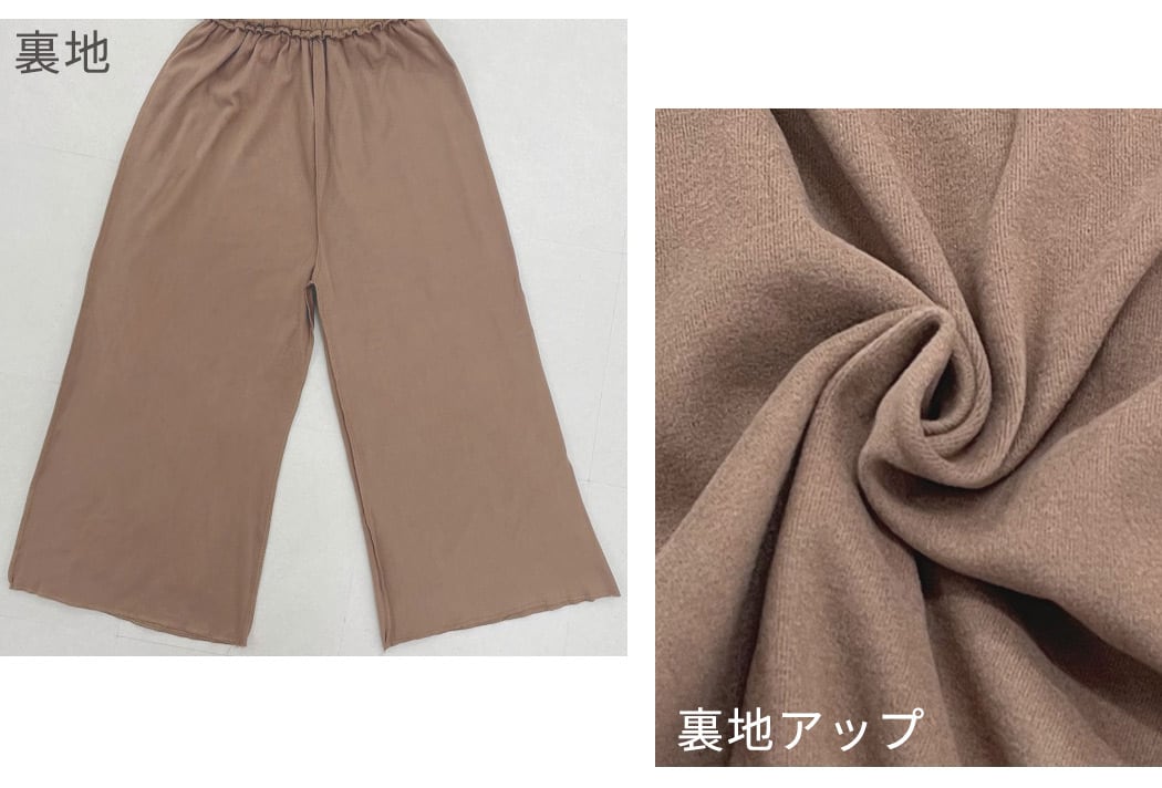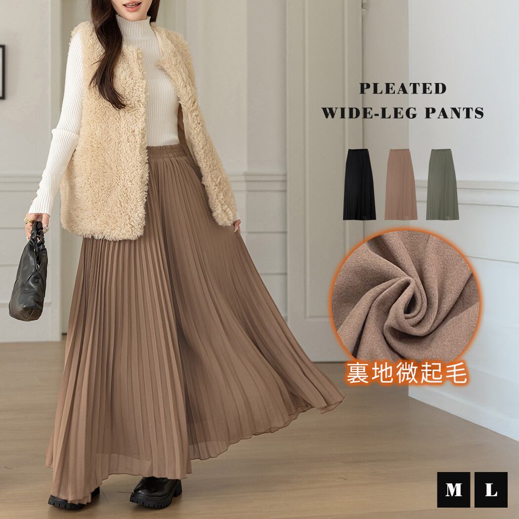 レディース 微起毛 プリーツワイドパンツ