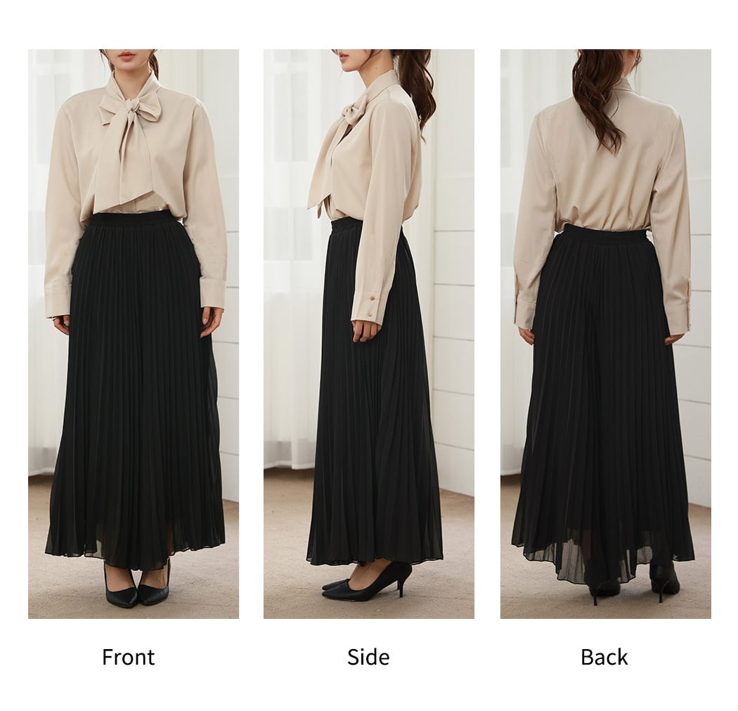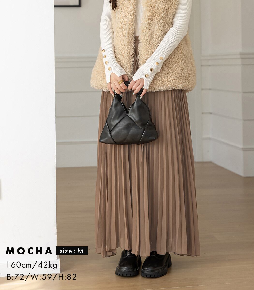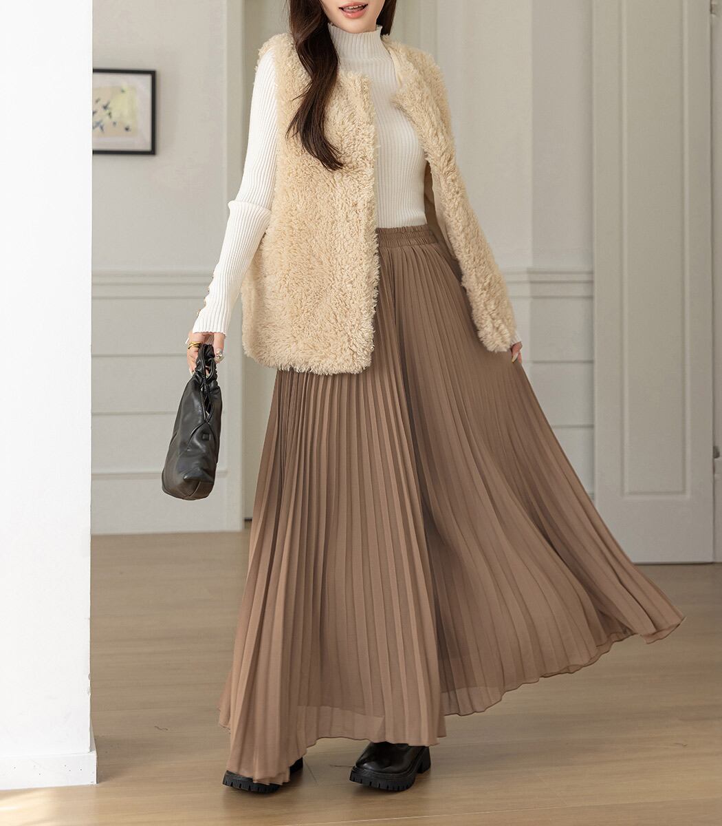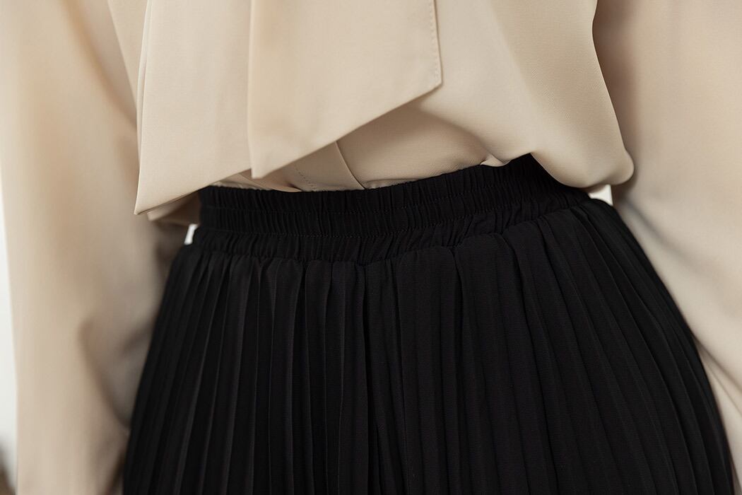 動くたび揺れる裾メロウのプリーツ生地が、